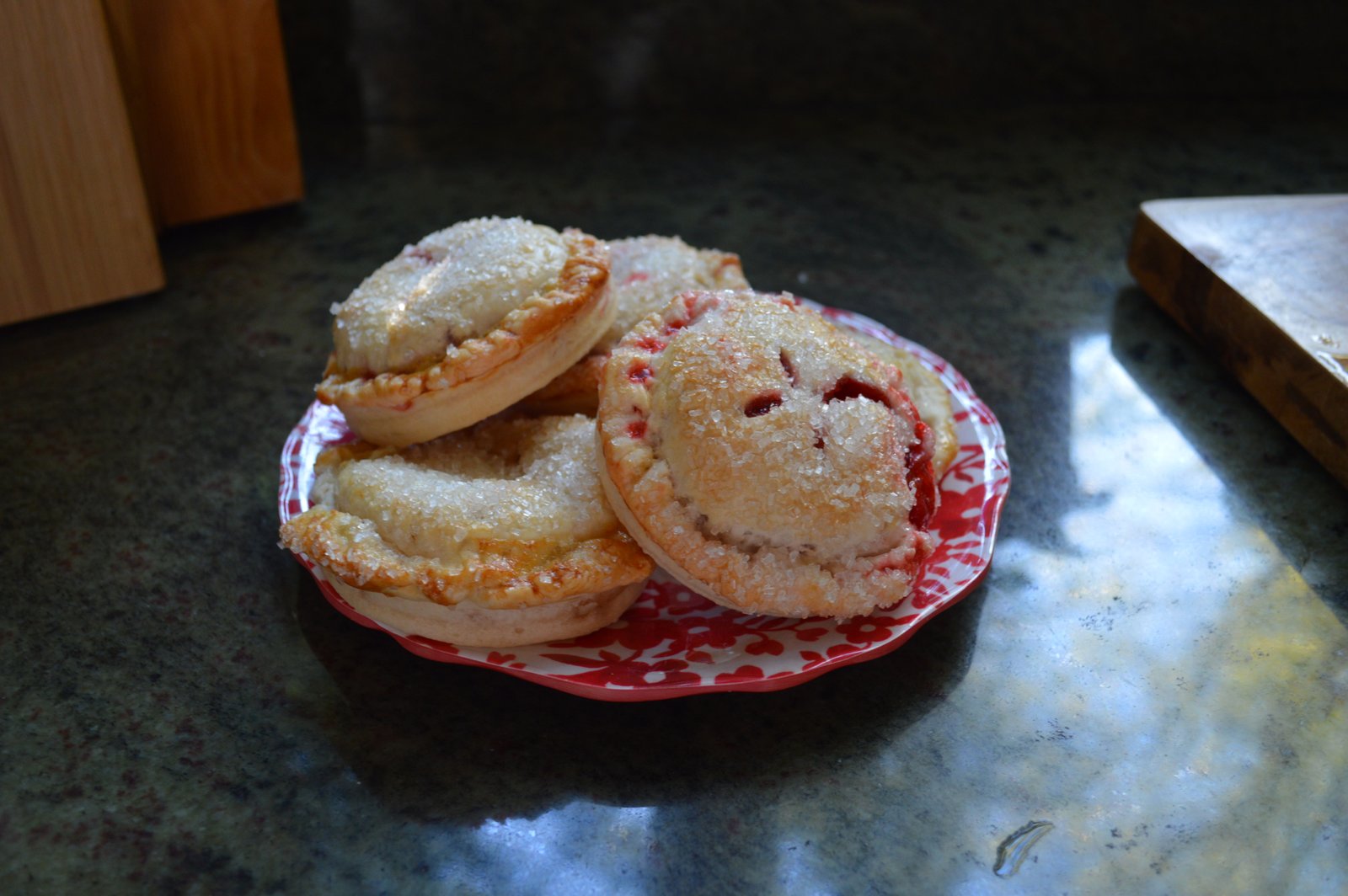 These are the perfect pies to take on a picnic...canned pie filling is not my favorite by any means, but it's not bad. They are easy to pick up and eat, look and smell wonderful and they take about 30 minutes start to finish - can't beat that!