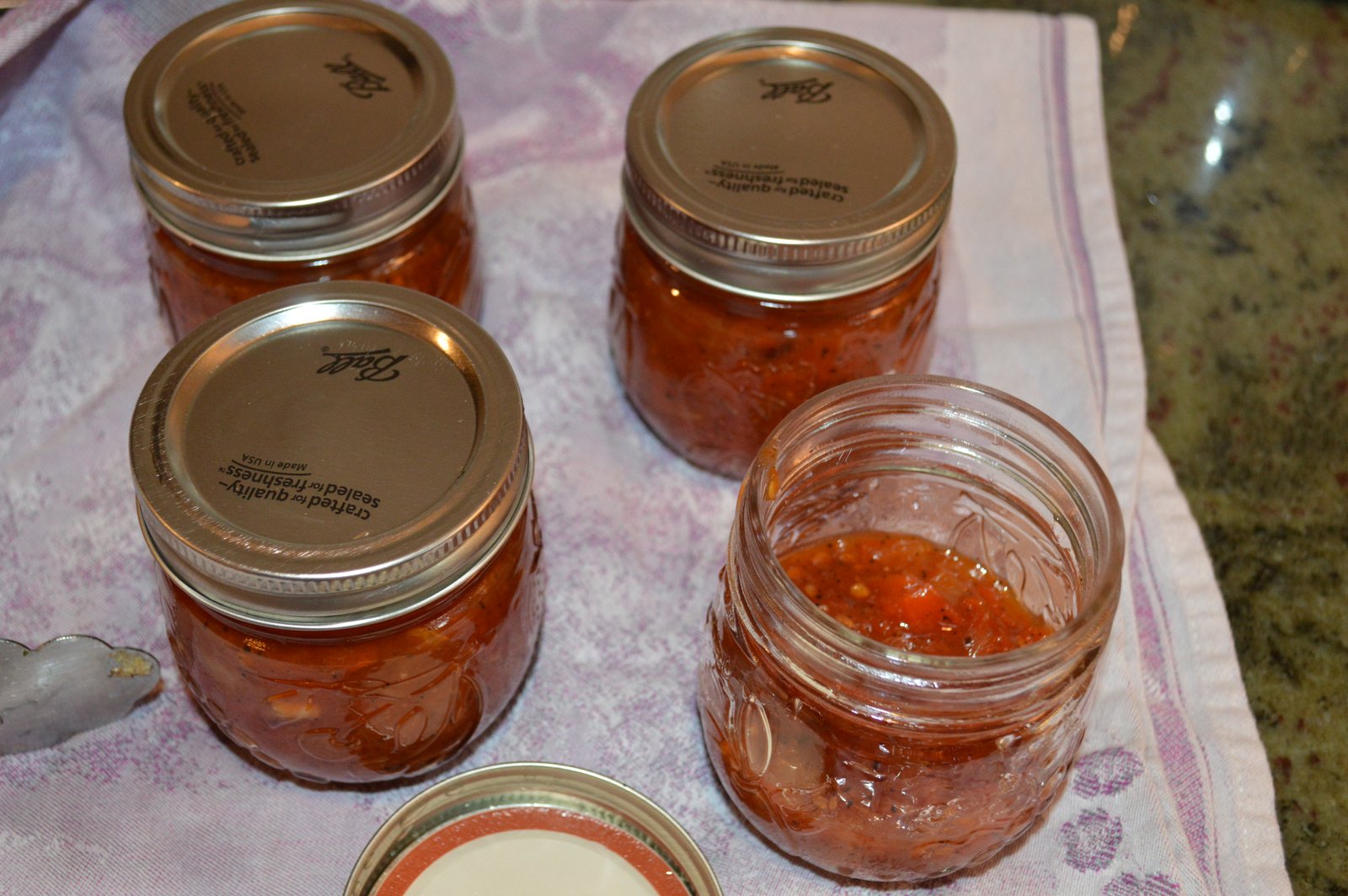 Some of you have asked about my tomato plants this year...dead, completely dead!! Some blight got them but before they met their untimely demise, they did give me TWO tomatoes!!! For 24 years I've tried to grow tomatoes...24 years of nothing!!! But this year I've got "an ace in the hole"...my daughter-in-law has planted a garden - we made a deal - I bought the plants, she tends them - and then we will share the goodies. So I'm still hoping for vine-ripe tomatoes this year...now if only Mother Nature would cooperate and give us some SUN!!! In the meantime, making tomato jam brings me comfort!