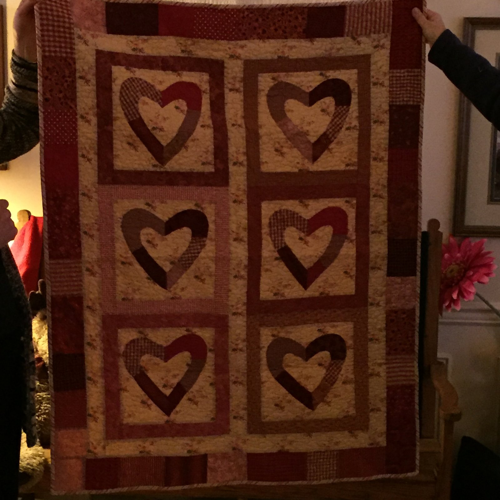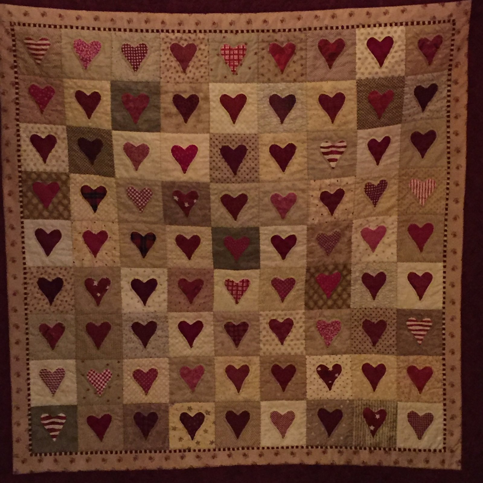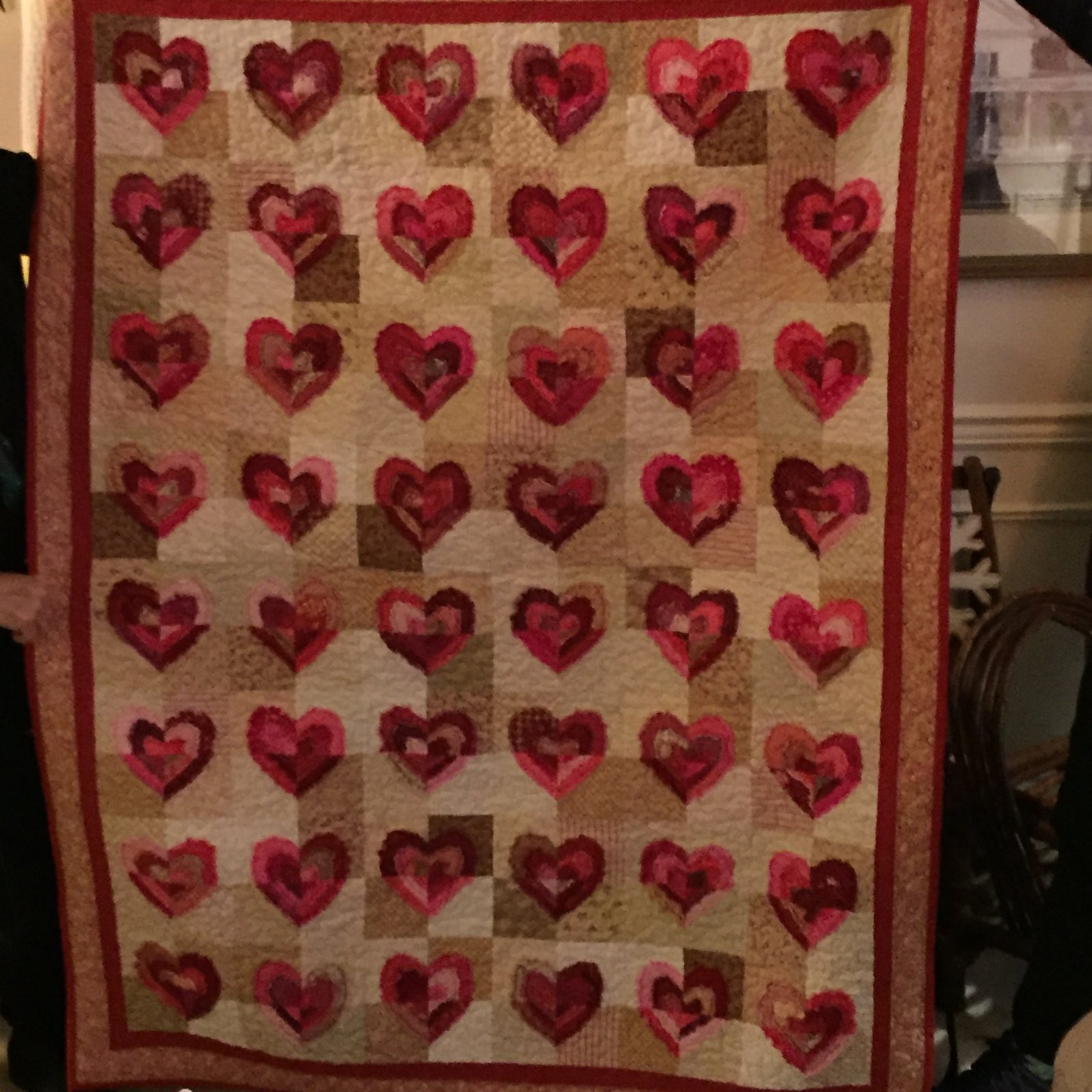 This is Diane's Valentine quilt and if you click on the picture and make it larger you'll be able to see the beautiful blanket stitching around each heart - way to go Diane!!
