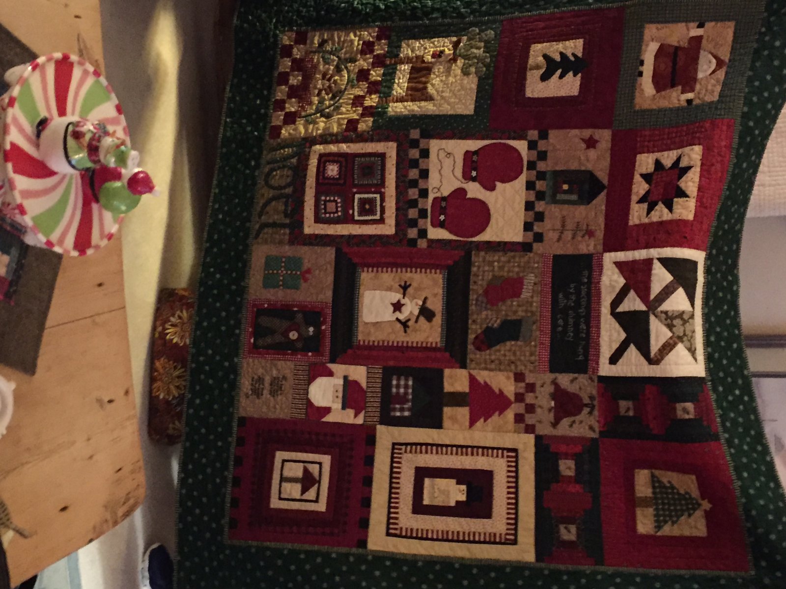 Think of this post as an I.Q. test...in how many pictures is the little Christmas plate on the table going the right direction?!? Godfrey! You know those Apple commercials where they show cool pictures and there are no words and then at the end they say, "Shot with my iPhone 6" - maybe they would be interested in my iPhone pics?!? This is another of Denise's creations, all finished and ready to be snuggled!
