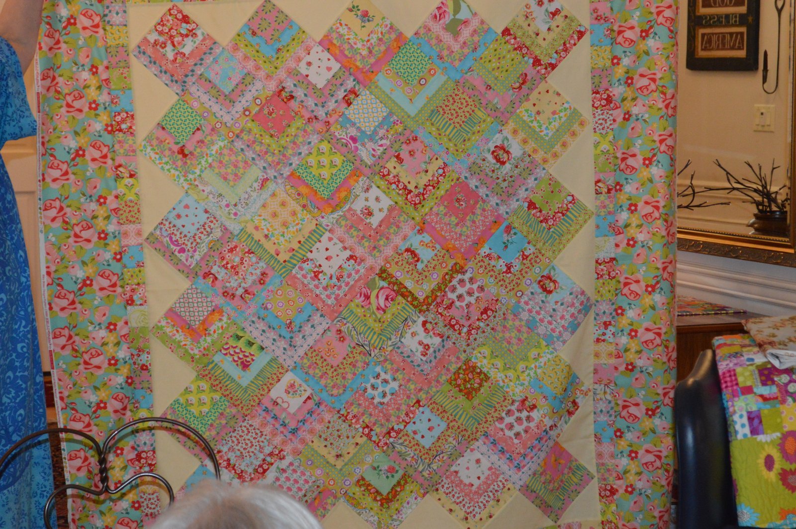Janet showed us this lavender and blue quilt she made for her granddaughter - from the napkins she used at her wedding! Now that's a new one on me! But what a great memory/keepsake this quilt now is!