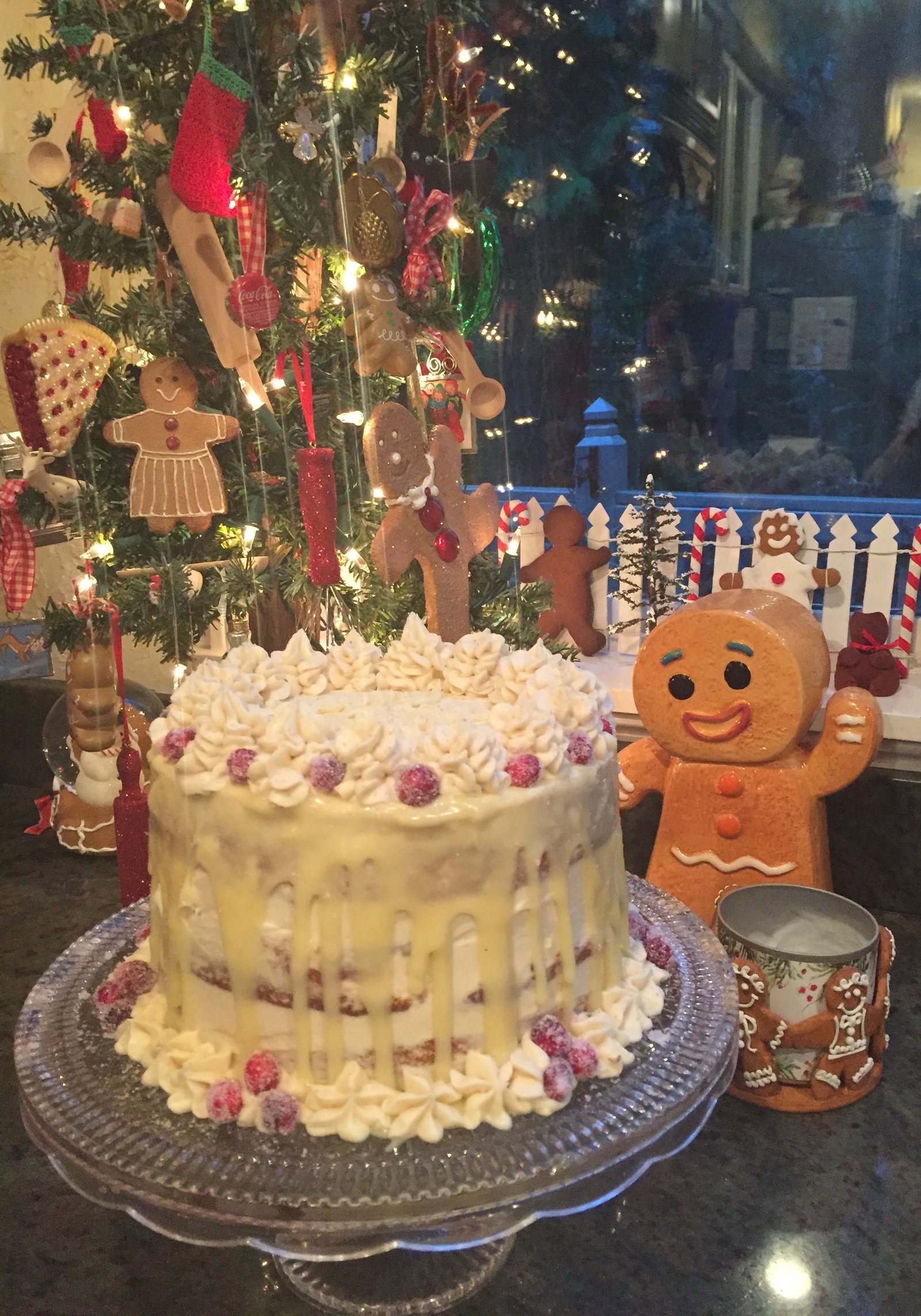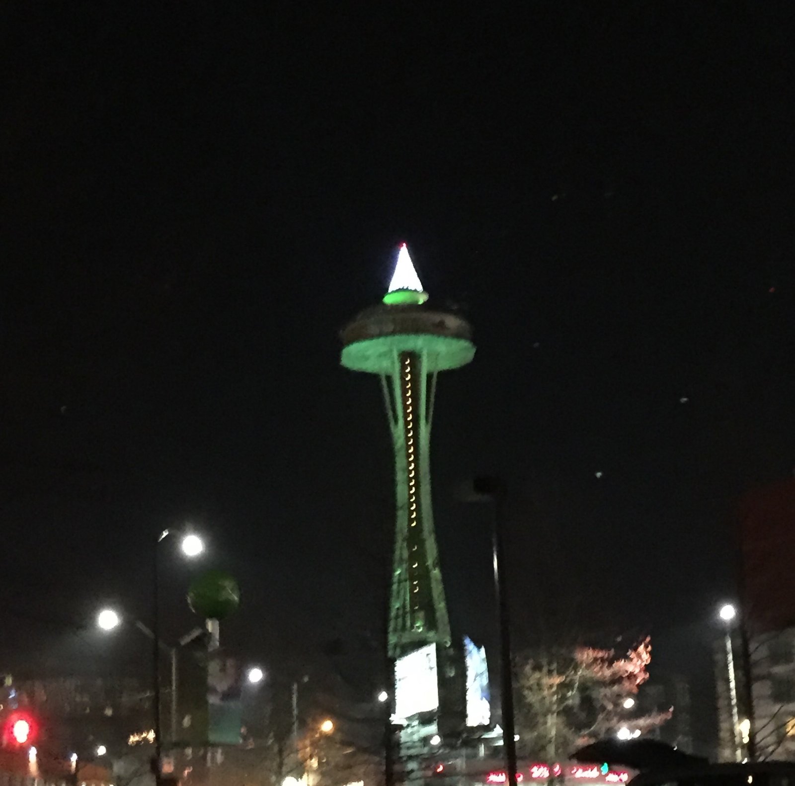 After Max and Elsa left us and went home to their house to wait for Santa, we set about making merry as best as we could...We saw Holiday Inn at The 5th Avenue Theater, a treat for sure and we made our annual pilgrimage to the giant Gingerbread houses...this year I was disappointed...they weren't as creatively displayed and not at The Sheraton Hotel, so maybe that's why they didn't seem as grand...hopefully next year they'll regain their sparkle! No trip to Seattle is complete without a drive-by of the Space Needle - all decorated with a tree on top!