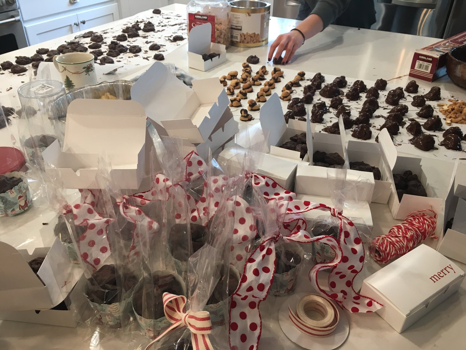 My sisters and I hand-dipped about 400 pieces of chocolate-covered nuts...which is what we were by the time we were done, chocolate-covered-nuts! It was very fun, especially when they got into it about Trump...I've never laughed so hard in all my life...there wasn't enough chocolate to keep them calm and I thoroughly enjoyed it all...even if they did call me a sheep...baaaaaa..and a snowflake...
