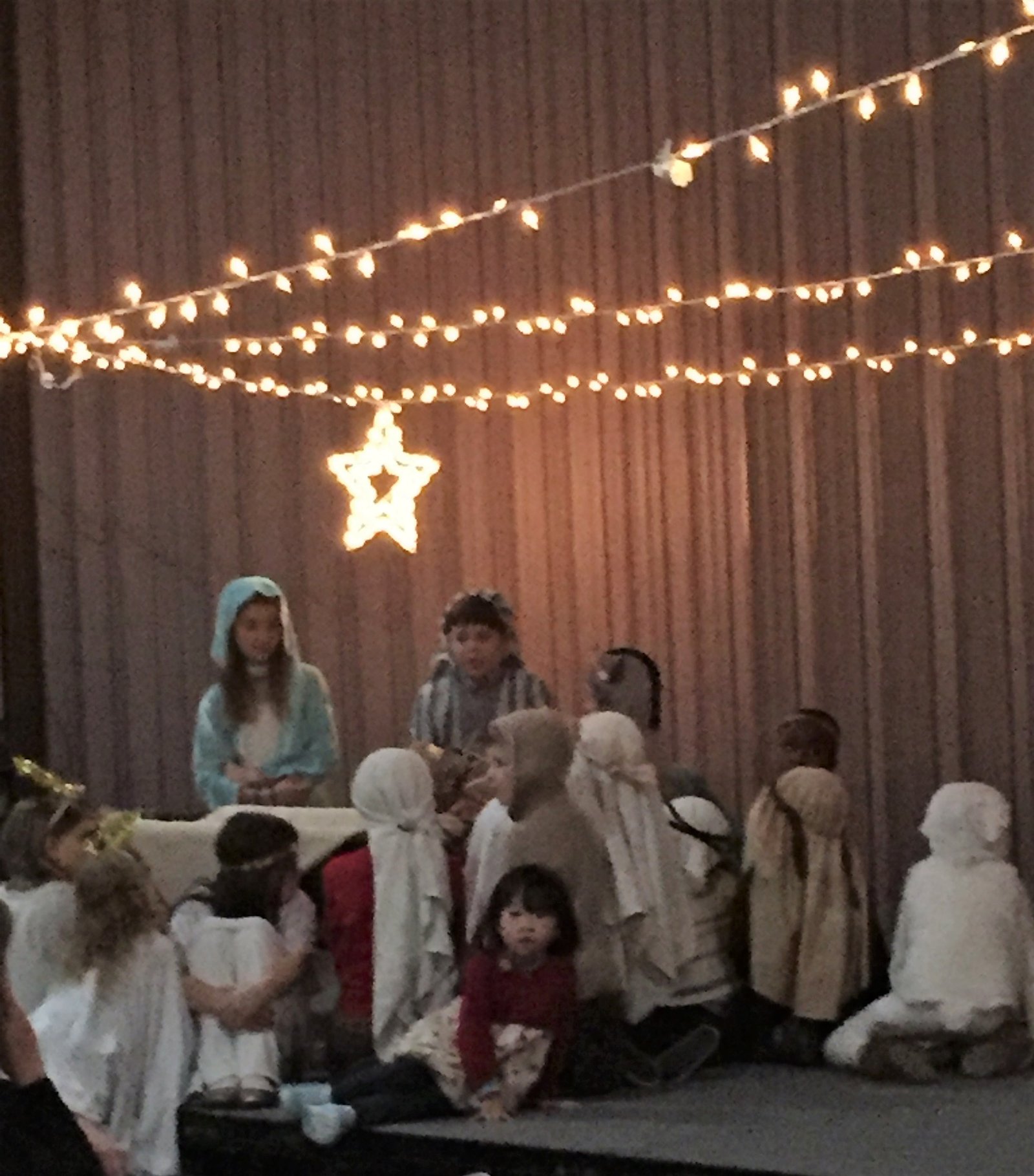Speaking of the Christmas Spirit...take a look at this horrible picture of my leeeetle friend Sophie. Sophie and her mom came to our church Christmas dinner and when the little kids got up to do their Christmas Pageant, little Sophie wanted to be a part of it so she walked up to the stage, climbed up and when the kids sat, she sat and when they stood, she stood...and even though her mom was very worried Sophie would do something, (every kid on that stage was doing something!) Sophie did not and it couldn't have been more perfect. One of the highlights of my Christmas for sure!