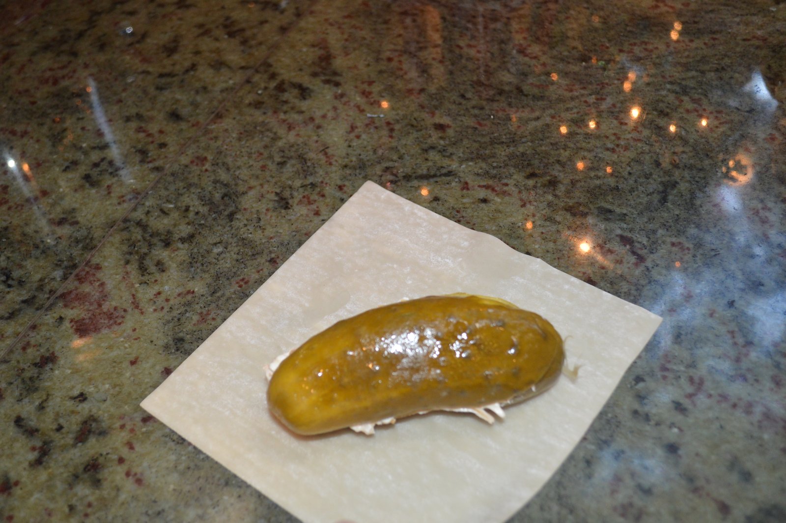 4 large whole pickles (Claussens refrigerated pickles is what I use. Don't buy huge pickles or the wonton wrapper won't fit.)