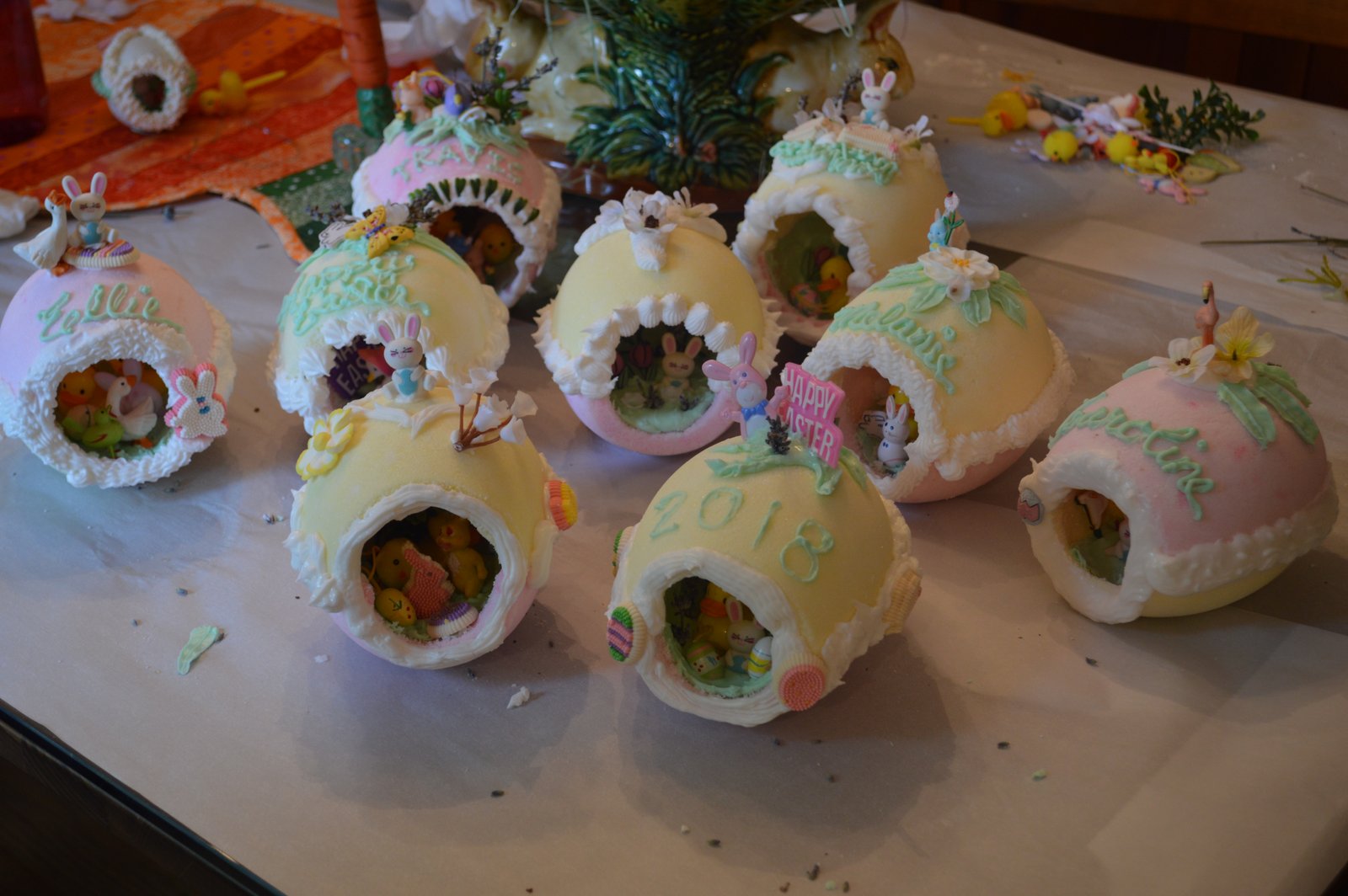 Have I told you about the ESL group I have come to my house every week? Maybe not, but it's been one of the very best things I've ever done! Maybe 9 or 10 Chinese gals come every week to my house to practice speaking English and also one gal who is from Spain comes and one who is from Russia via Israel comes and one from Great Britain, who comes to make sure we speak proper English! A week back I had them all make sugared eggs and we talked about Easter, as the Chinese gals don't really know much about it except that the Easter Bunny comes and passes out chocolate bunnies! These are the eggs they made - they all turned out SOOOOO cute!