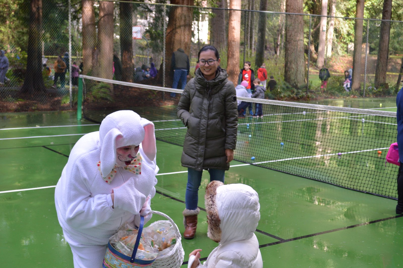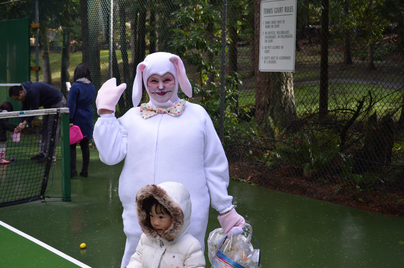 Thought you might need a laugh right about now...that's Moi, reprising my role as the Easter Bunny for our annual neighborhood Easter egg hunt....some kids were a bit traumatized by the rather large bunny even though I tried to assure them the Easter Bunny was MORE traumatized than they! The mister acted as my personal body guard/photographer and managed to get his picture of my sweet little Sophie and her mom Rui.