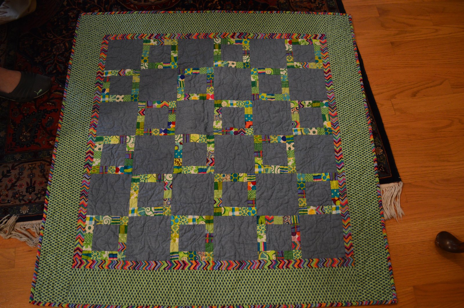 This is the back of Deborah's quilt - those are all threads - I took this picture because the back of her quilts are more interesting than most of the fronts of mine! Now, here's the front: