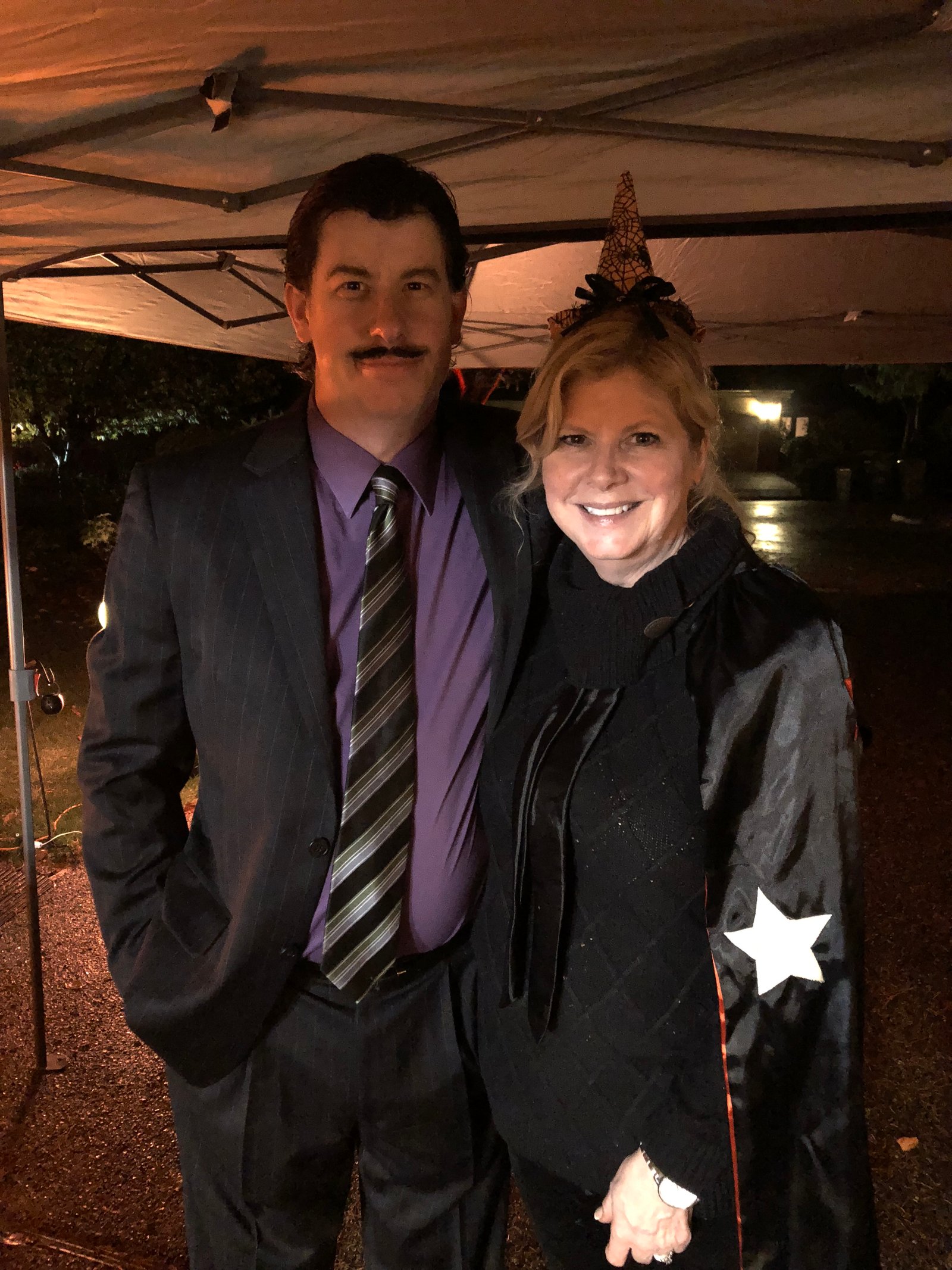 Joni and Deb kept watch over the vat of donut glaze...butter, vanilla, butter, powdered sugar, butter, cream, butter...that's why it was SO dang good! I didn't think Joni came in costume, but she was wearing flip-flops on a rainy cold night, so maybe she was partially costumed??
