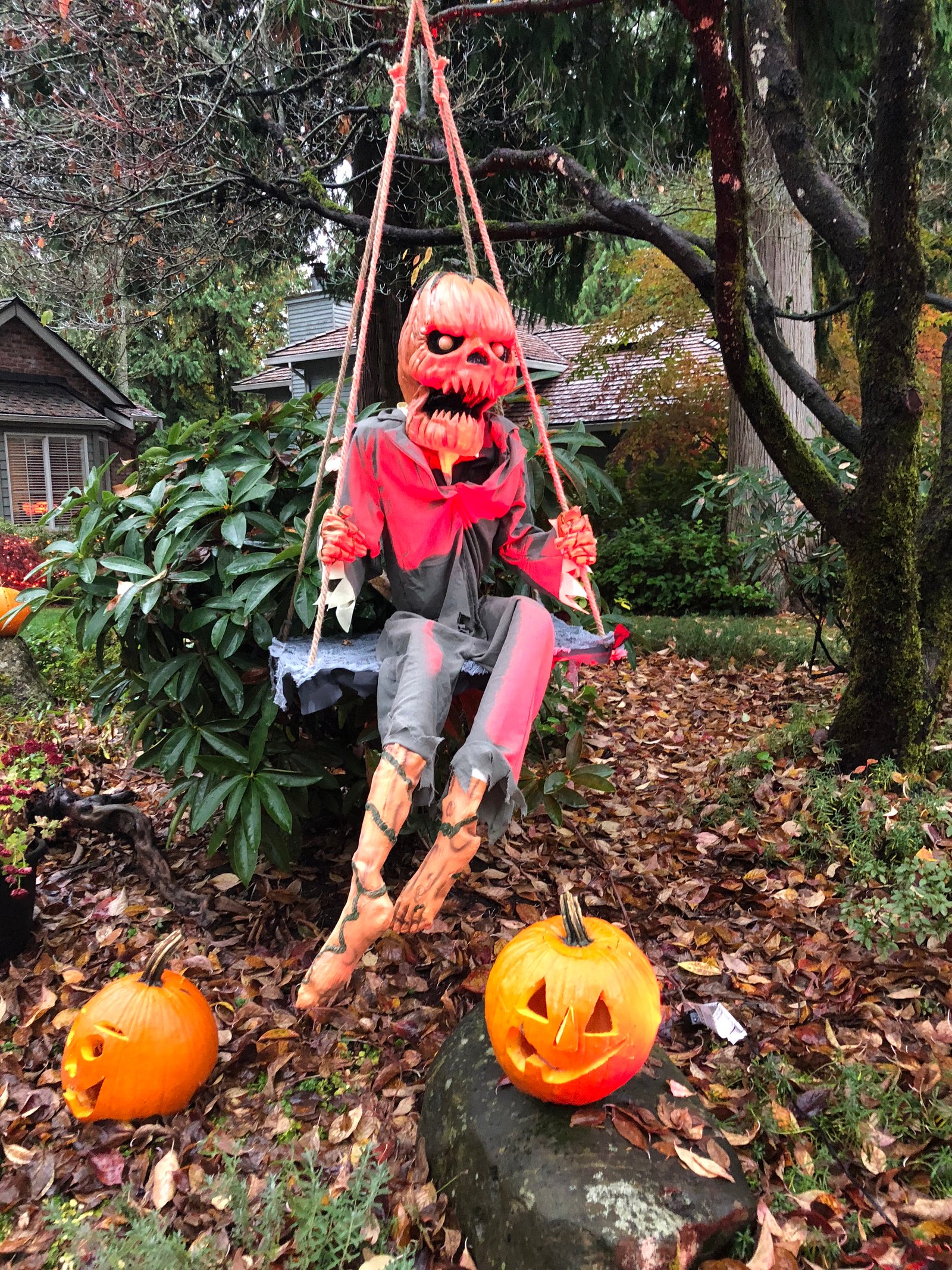 Also not necessary are scary Halloween decorations but the boy insisted...so I insisted that he pose for a picture with me...I barely recognize him as he doesn't have black hair or a mustache...he was supposed to be Gomez Addams...close but no cigar!