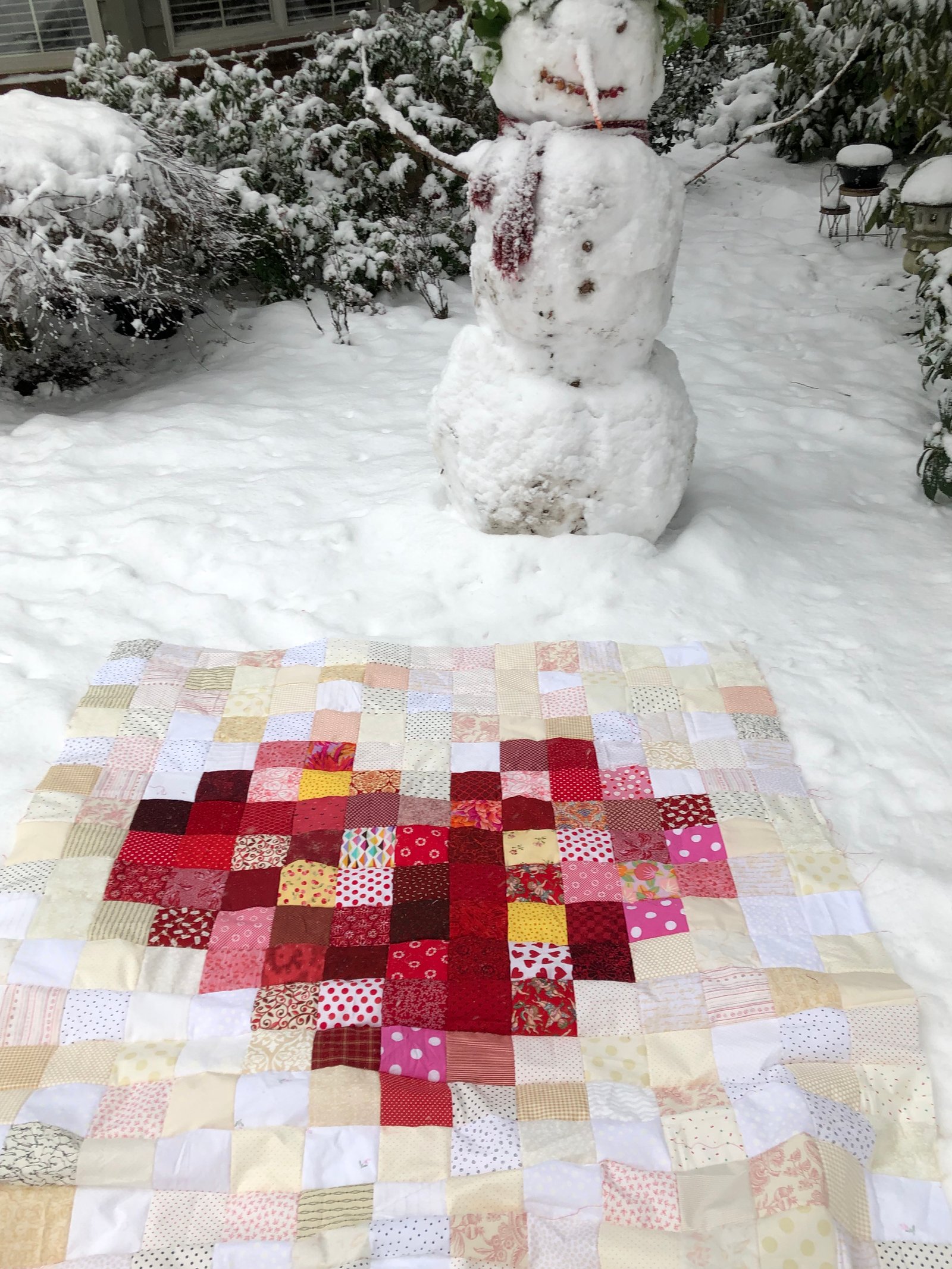 Since we were snowed in I had to use what fabric I had...wish I had some different fabrics on hand but it is what it is...and I'm more than happy with how it turned out. So thank you to Amy!! All of those hours scrolling Pinterest finally paid off! Now to get this beauty quilted so I can wrap up in it and watch the new Valentine Hallmark movies!!!