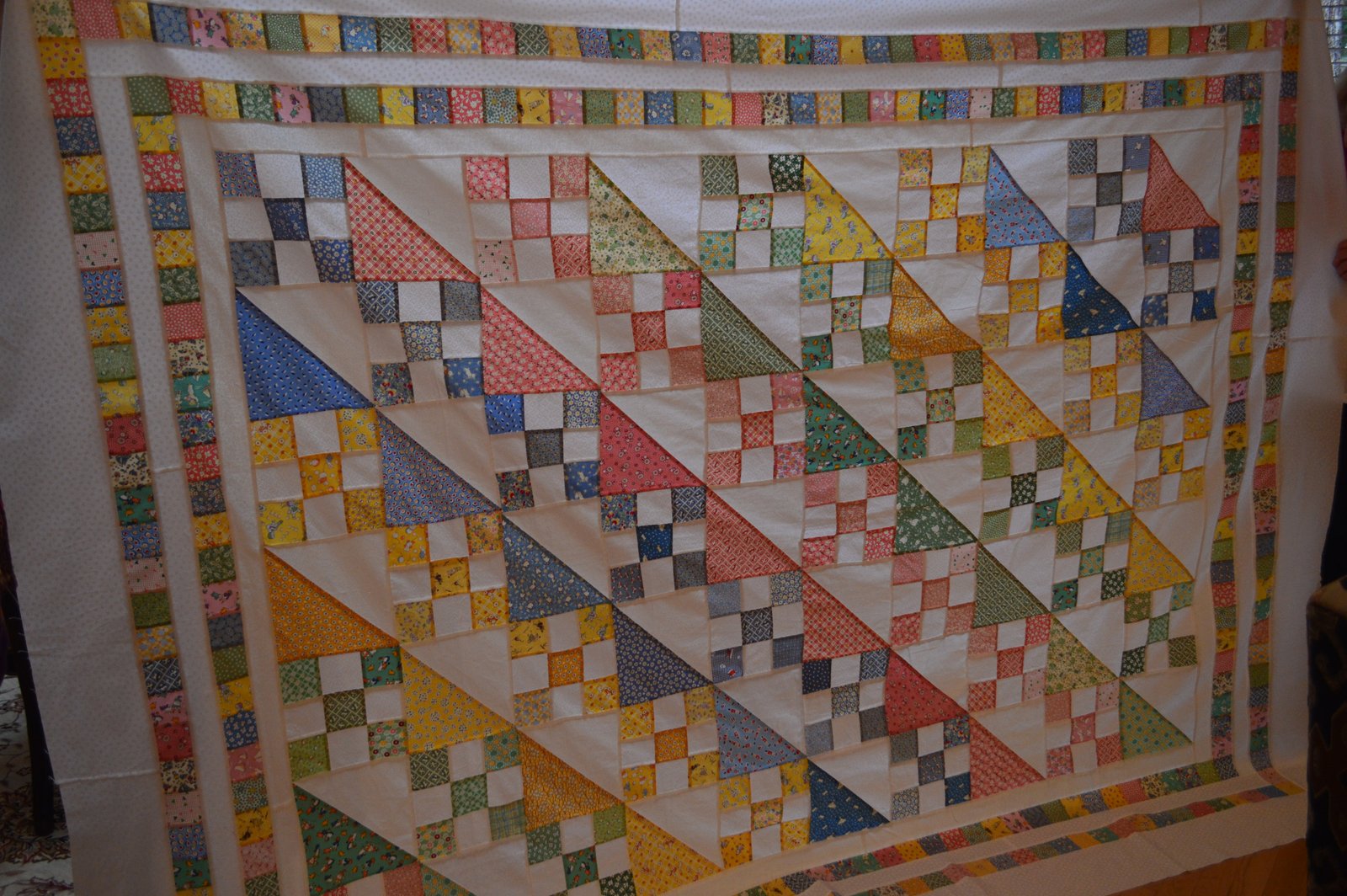 This massive quilt top was pieced by Marsha - I think she said it's queen size! Marsha loves her Aunt Gracie fabrics and so do I - this is just a yummy quilt - and since it will be used on a bed, think how nice it will be to sleep under this?! Let me know when it's done and on your bed Marsha and then invite me over for a slumber party and I'll take it to Dreamland! I really need to start making quilts that will fit on beds...