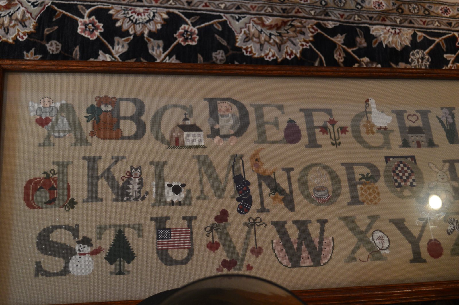 This picture just doesn't fit in the picture correctly...but I think you can see the incredible work someone put into making this alphabet cross-stitch. Denise found it at Value Village for $8.00. It's all hand done...EIGHT DOLLARS!!! I don't understand how beautiful hand-made items - things that should be family heirlooms - end up being given away...people are crazy!