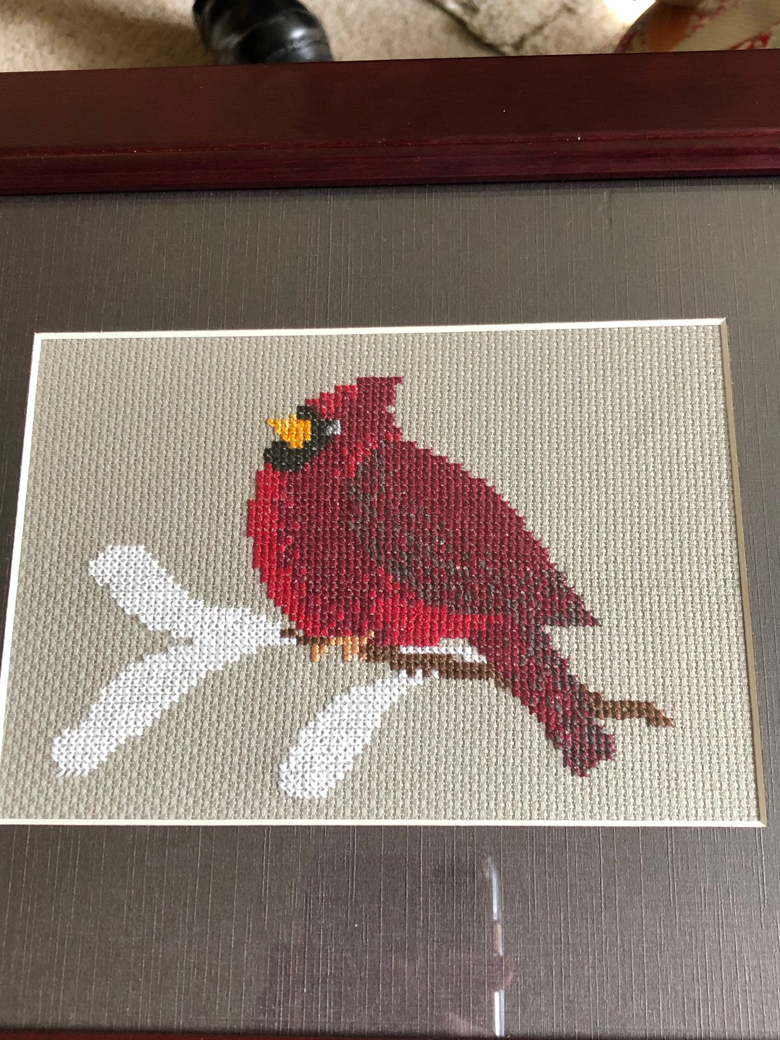 This cross-stitch was done by Denise and this picture just doesn't do it and the beautiful frame it's in justice. But I think you can see how wonderful her hand-work is! Wish I had the patience for cross-stitch...or for anything, for that matter!