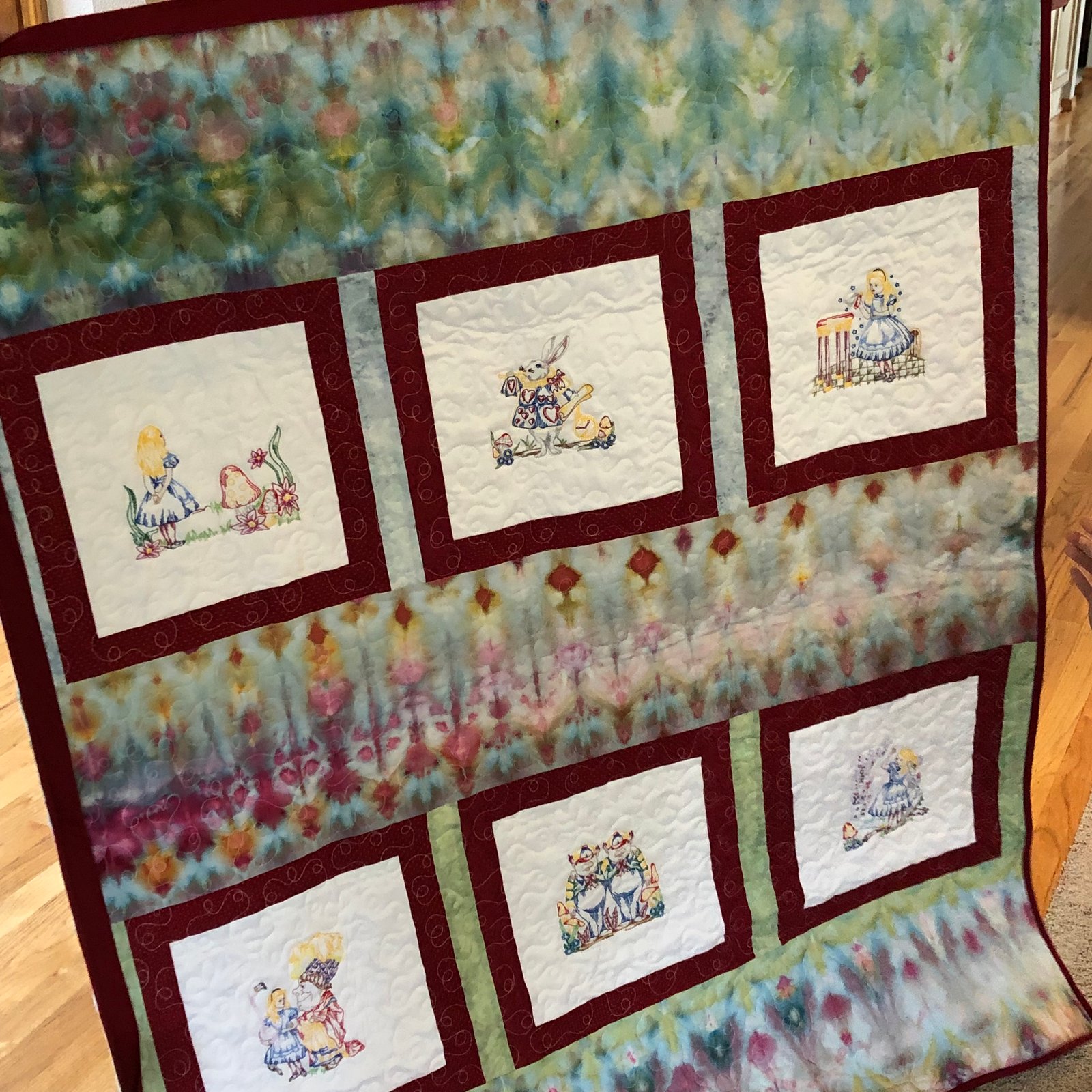 Jenny has almost finished her Alice in Wonderland quilt, just a little bit of the binding left to go. Jenny bought the embroidered blocks from someone on ETSY and made this quilt for her niece, who is named Alice. I think she's going to love it!