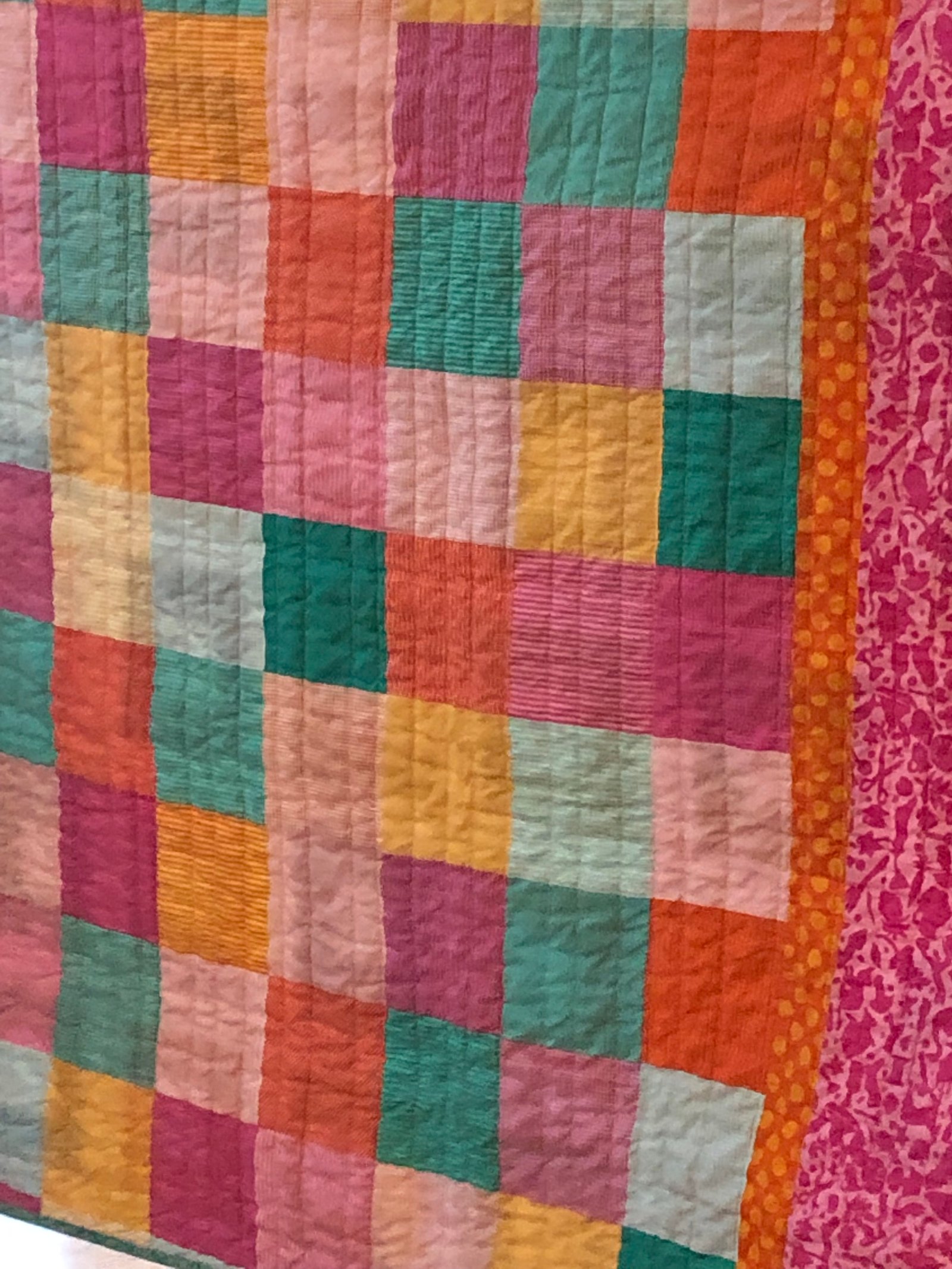 I love this quilt Stephanie made - and I really like the quilting. Terry quilted it. I think the quilting is the cherry on top. This quilt was made with scraps, that were headed to the trash bin, and Stephanie rescued them and turned them into this beautiful quilt.