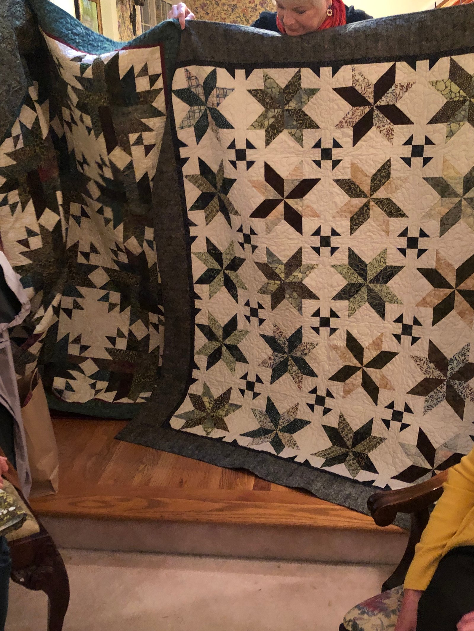 I'll sneak this one in to show you what I've been working on...at the time of our meeting I only had the center completed but now I've finished the border and after some social media "consultation" I decided to hand-quilt it...so now I need to live long enough to get it finished! Tick-tock! This is a Lori Holt pattern that I fell in love with many years ago and with the help of a kidney infection that flattened me, I was able to sit still long enough to get started on it and then I was bitten by the bug to get it finished!