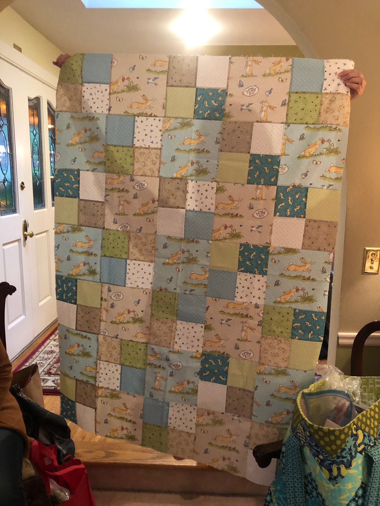 This sweet baby/bunny quilt was made by Kareena or Diane or Janet...I didn't write it down and I can't remember! It's made with really charmingly sweet fabric so some little child is going to be loving on this soon! Whoever made it - well done!