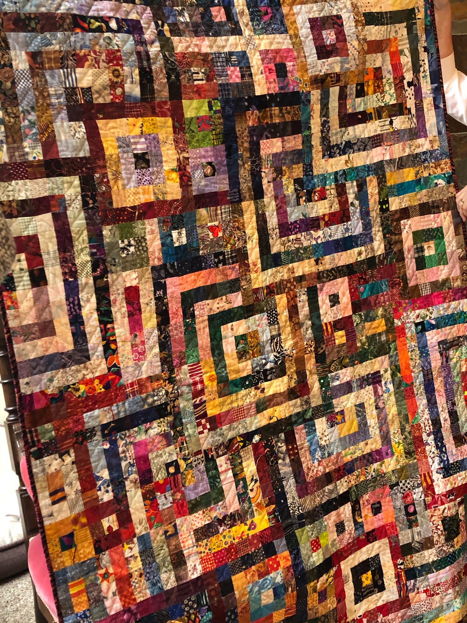 This is Deborah's Millennial quilt. She started it in 2000, and it has over 2000 pieces of fabric with only one repeat!!! This picture just does not do it justice - it is truly a work of art! Just think about working with all of those little pieces AND creating a complex pattern! Mind blown!