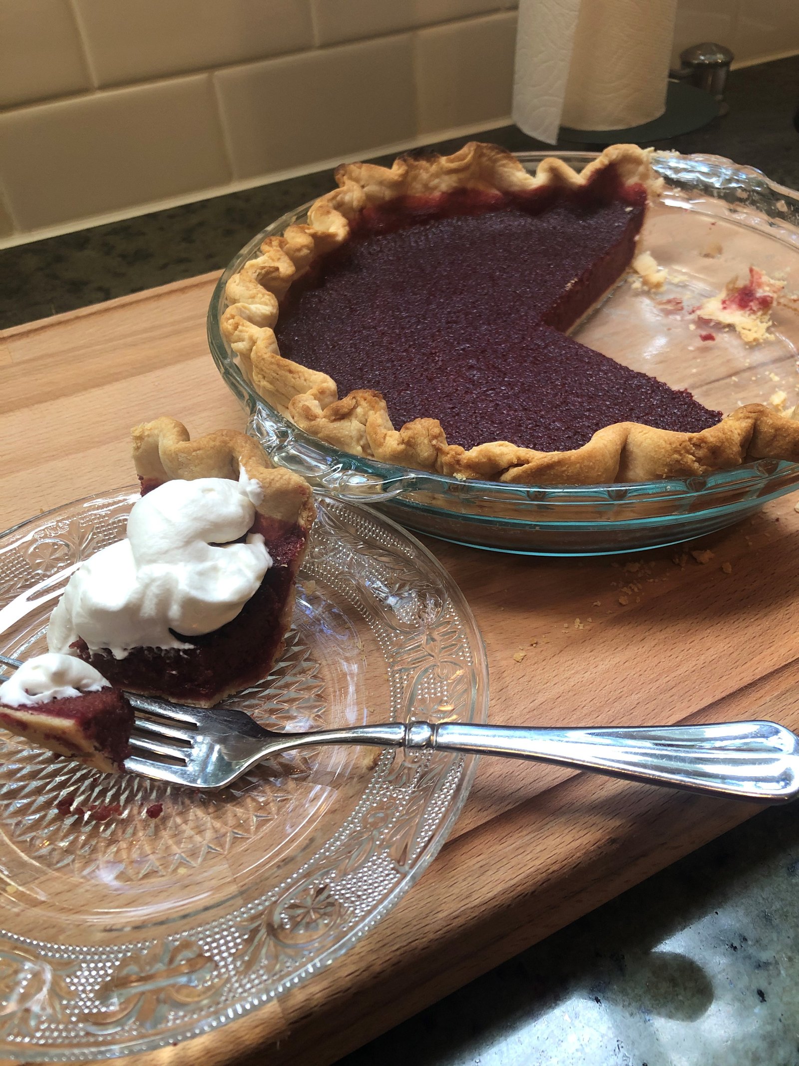 Another friend said she loved it...smooth, rich, pretty...and that it was much better with whipped cream. I had to agree...I would never eat pumpkin pie without whipped cream and one should not eat beet pie without it either!