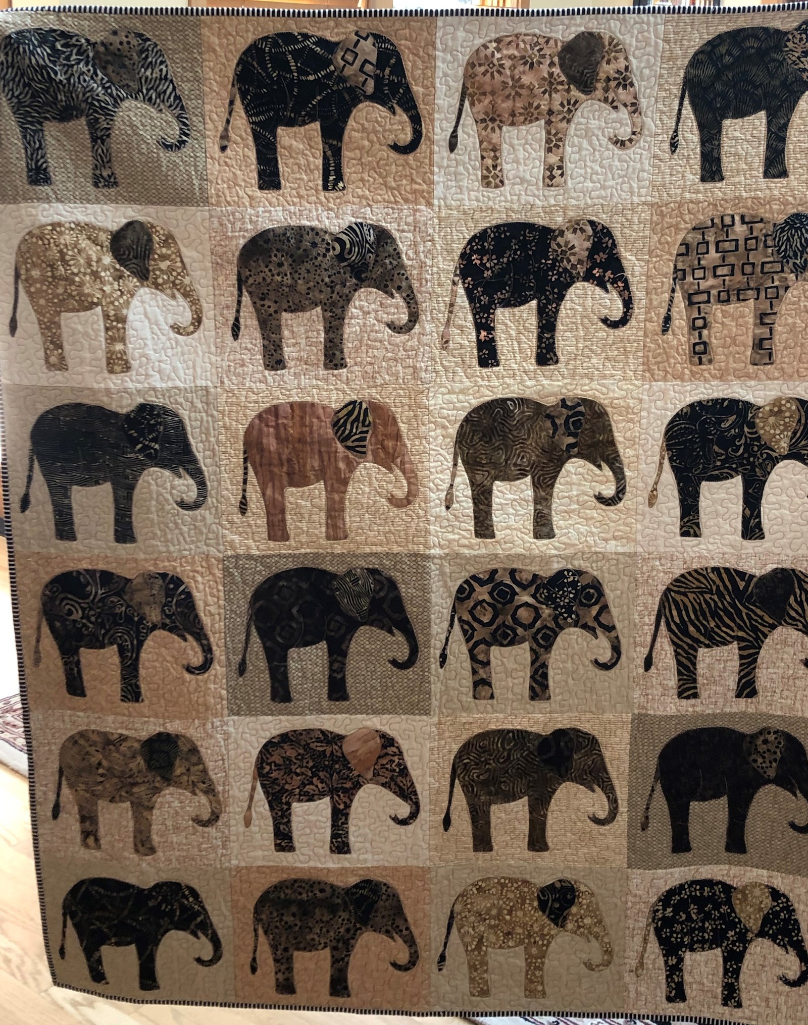 After seeing Janet's quilt again I kind of wish my quilt didn't have borders - I love how hers was finished without them. I also think it's very brave of me to post a picture of my quilt next to Janet's...I'm rather insecure about these things, especially since I noticed several of my elephants are missing their tusks! And some of their tails are cut off rather abruptly...Janet's elephants were raised in better conditions than mine!