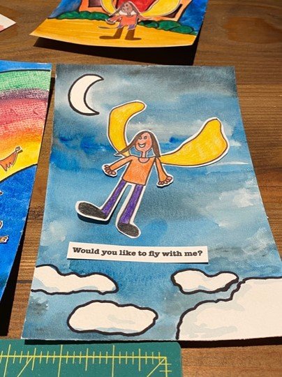 The picture on the left was drawn by Stephanie's grandkids, and it will be part of a book Stephanie is writing. The picture on the right are all of the scarves Stephanie has made in the last few weeks that will be donated. See? She is a whirling-dervish-of-busy-ness!!