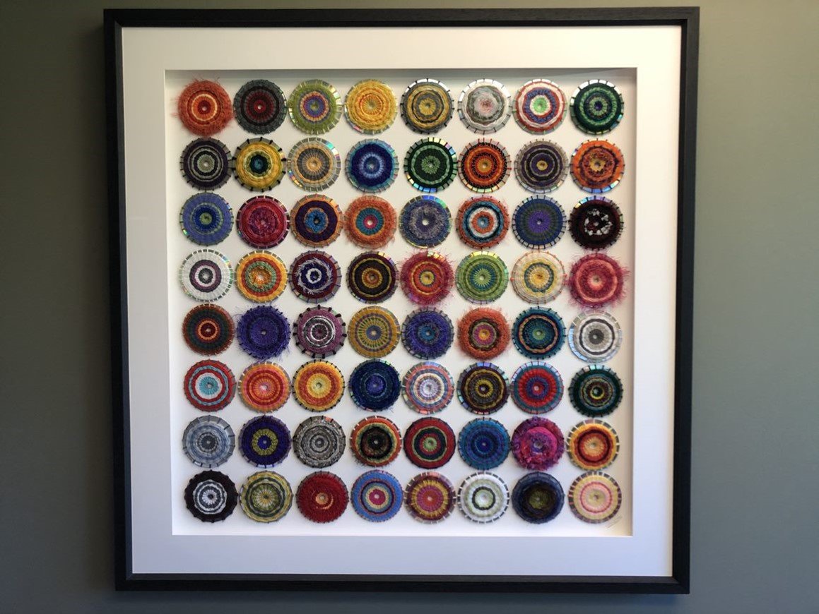 One more from Stephanie. You might remember the CD weavings our group helped her with several years ago. And by helped I think we made about 10 and Stephanie made about a thousand. Her weavings were shown at the Bellevue Art Museum and this framed piece was in her husbands office for a while but now she said it needs a new home. It's large, so it needs a large wall...I think she said it's 50 x 50-inches?? It's for sale, $1,500 is a steal for this amazing piece of art. I would buy it but we don't have any walls to speak of!! How about you??