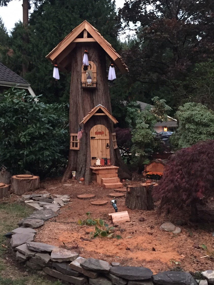 This is what Barbara and her husband have been working on for the last month - a fairy house! They had to have a tree cut down but saved the stump and created this "neighborhood sensation." I have driven by this many times and every time I do I see someone standing nearby the fairy house admiring it. They decorated it for Halloween so I'm sure it will be lighted for the holidays, too! It's really amazing. If you come to Seattle you must see Pike Place Market, Snoqualmie Falls and the Moultons Fairy House!