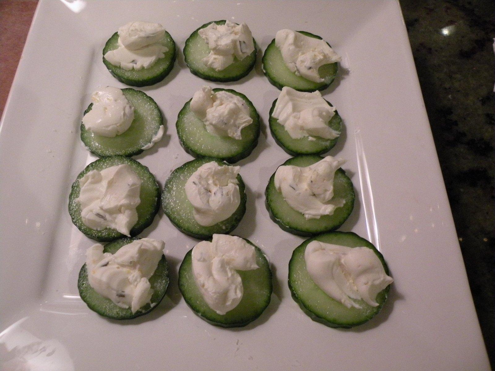 1 English cucumber, sliced into sixteen 1/4-inch rounds, peel left on (If you cut the cucumber a bit on the diagonal you will have a larger surface to hold more cream cheese/salmon...bigger is better!)