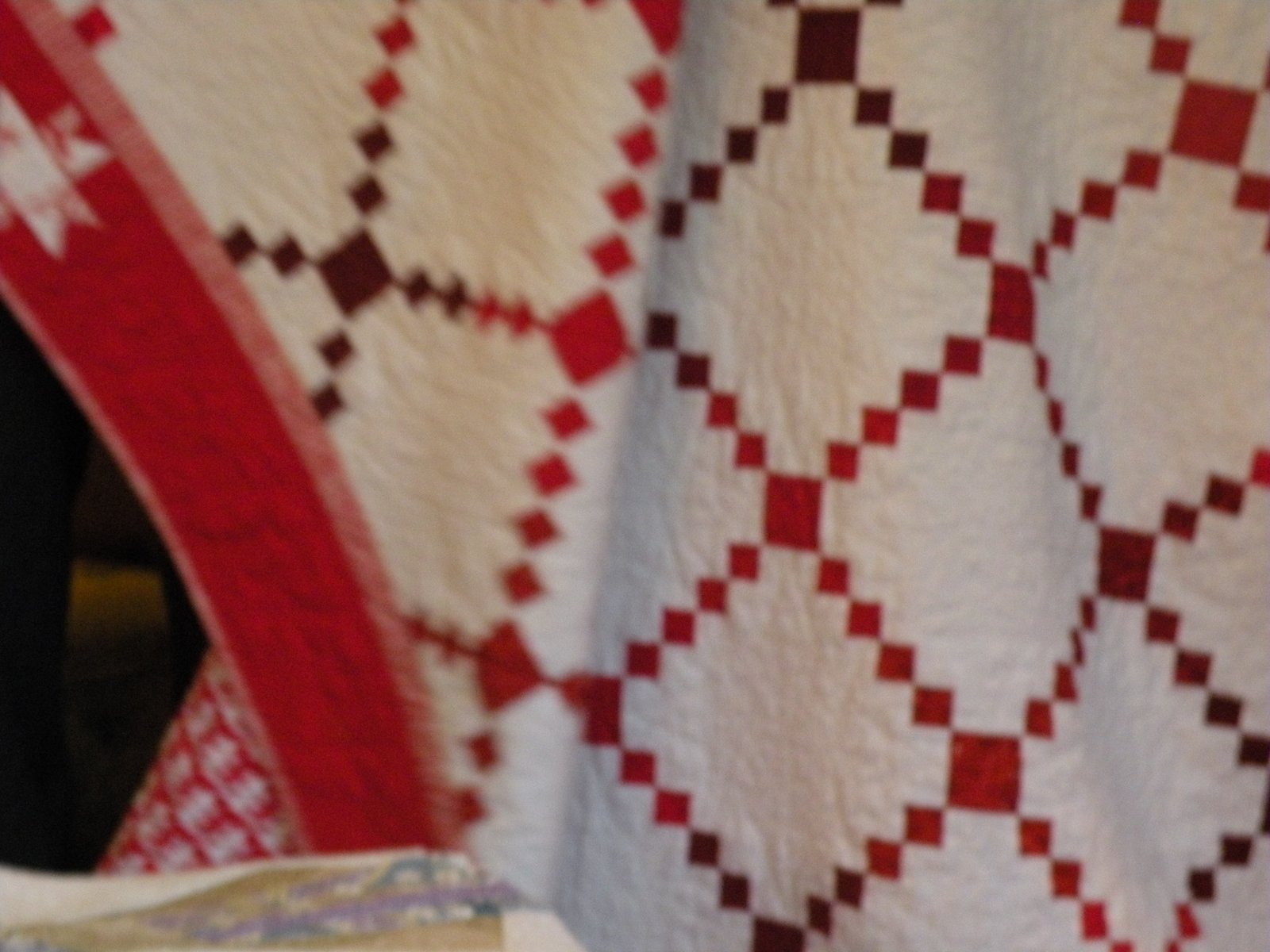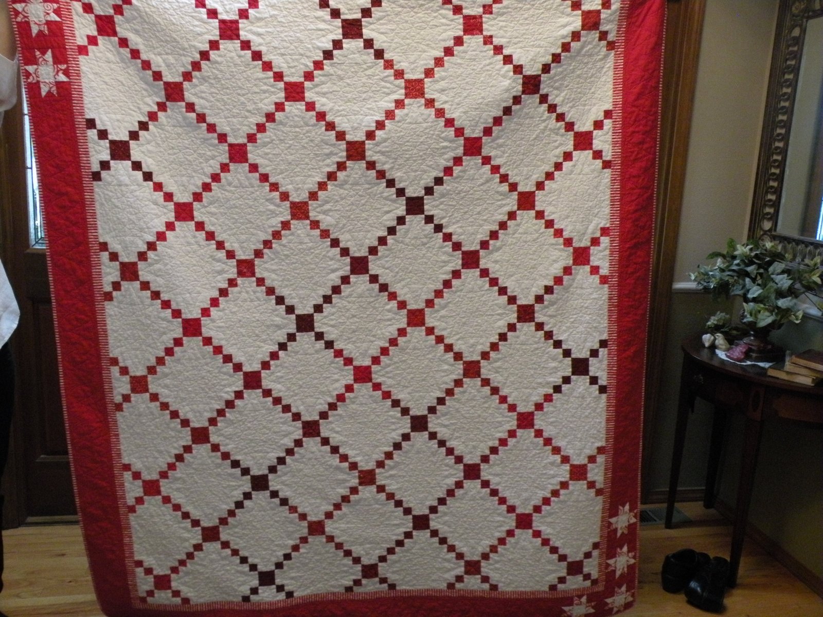Another quilt by Terry...an Irish Chain that is as beautifully quilted as it is pieced. Terry also pieced stars in the borders, Terry is also the queen of "special touches" that personalize her quilts. Got to love that! I love the colors of the reds she used, how they go from light to dark...this is a stunning quilt in person!