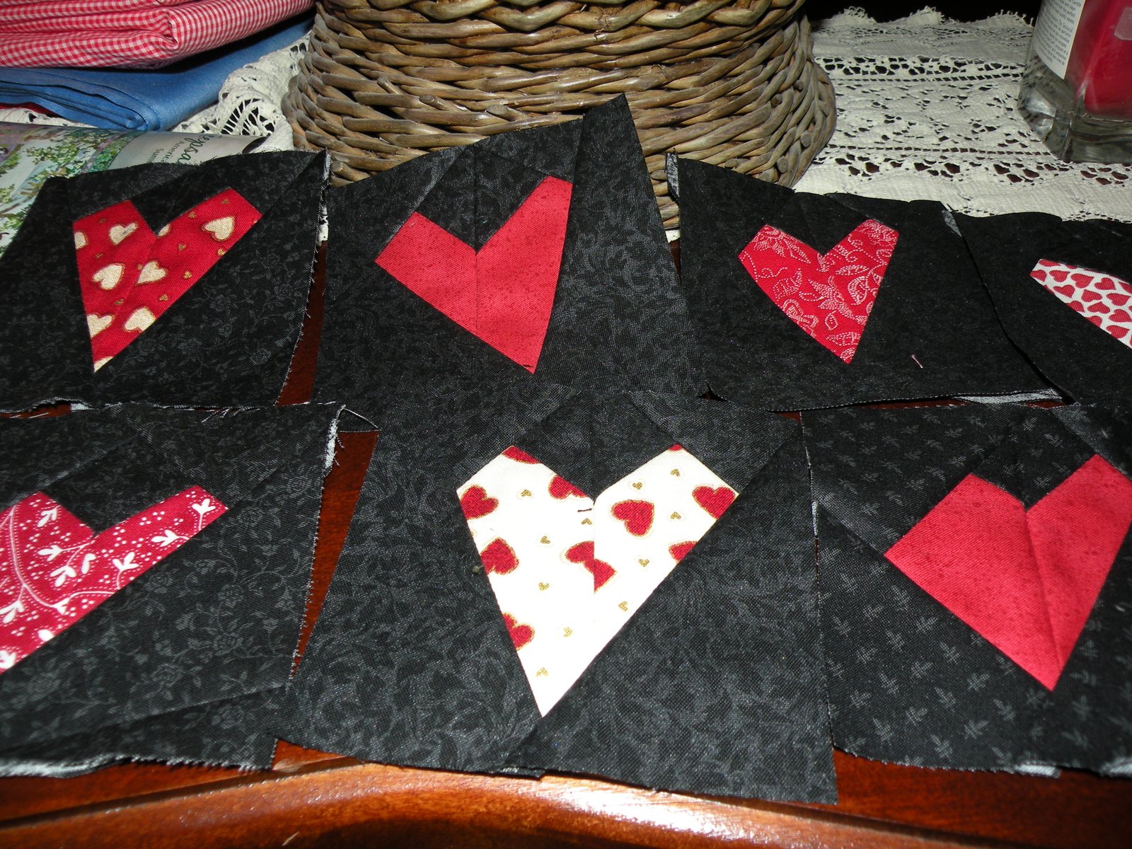 Denise brought in these little pieced hearts she is making...I think she said she is going to make a table runner with these - but wouldn't an entire quilt be wonderful?!? There's something about black and red quilts that "speak" to me...Denise is our resident paper-piecer but these are not paper-pieced! (I personally think Denise should keep making these blocks until she has enough for a big quilt...I LOVE seeing my friends make intricate quilts - because I would never do it!) We have a new group project...an "honor" project because we are really not accountable for doing it - like having to bring blocks each month for someone, those have to be done, but our project is really just a theme...Where the Heart Is...and we can interpret that any way we want, and make a runner or a quilt or whatever and we are supposed to have it done by June...but without any real motivation I'm wondering how many of us will do it? Okay, I'll fess up, I'm wondering if I will do it!
