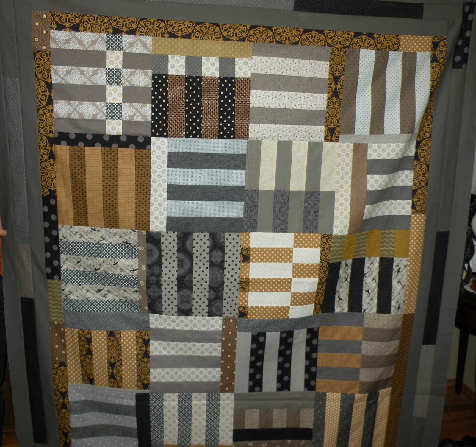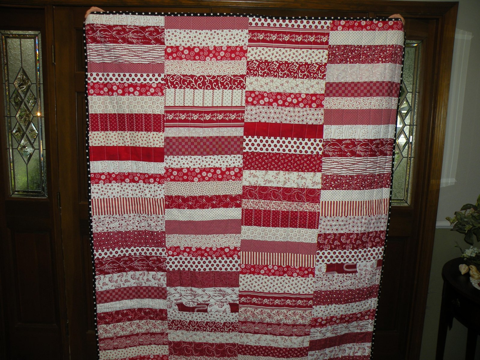 Marsha made this darling strip quilt and believe it or not, she said it was really HARD for her! She likes to sew things that line up nice and even, so sewing by the seat of her pants was not something she is used to...of course, that's how I sew everything so I thought this quilt was great! I think she made this for her neice?