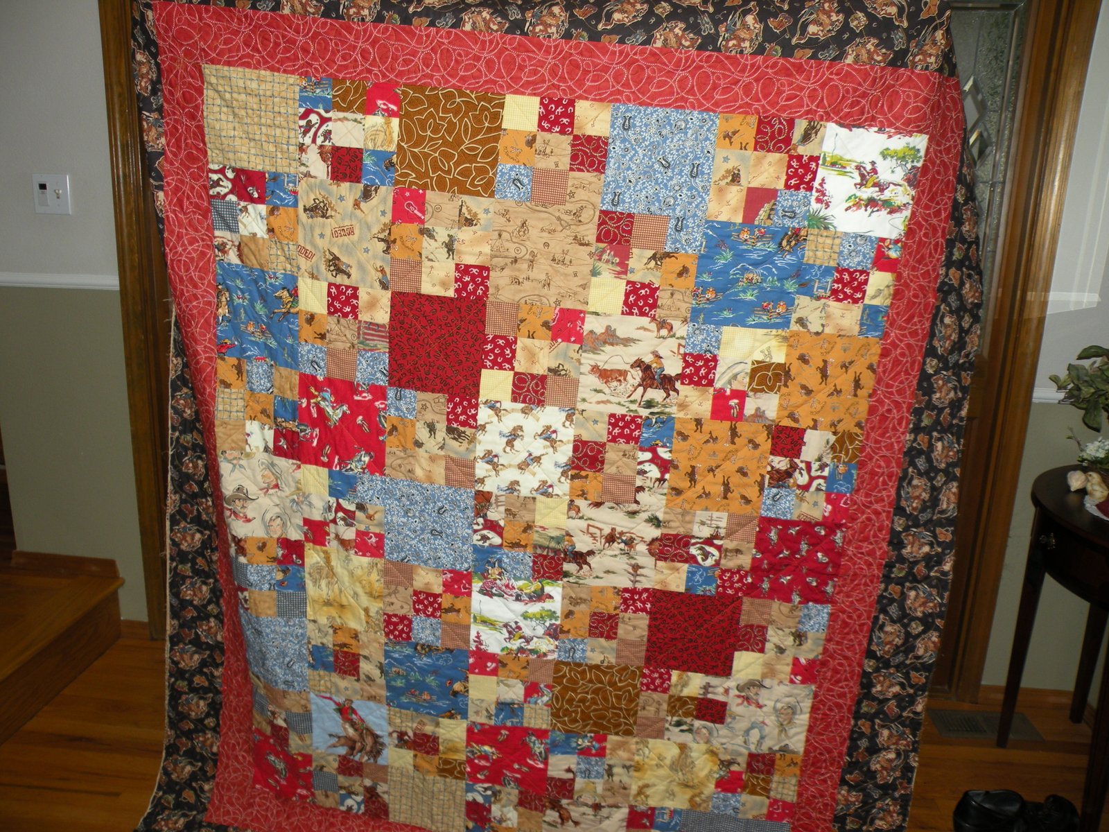 The quilt above was made by Marsha's dear friend, who passed away two weeks ago after an 8-year long battle with cancer. Her friend made this quilt for her grandson and she was trying to get it finished to give to him before she passed away. Marsha saw the quilt when she went to visit the family and told them she would get it finished for her, she just needs to sew the binding on, as the quilting has been done. It's made from cute cowboy fabric and you just know that little grandson will cherish this quilt! Marsha, as they say, is always building her mansion in Heaven! (And her mansion will be one of the nicest one's there, no doubt!)