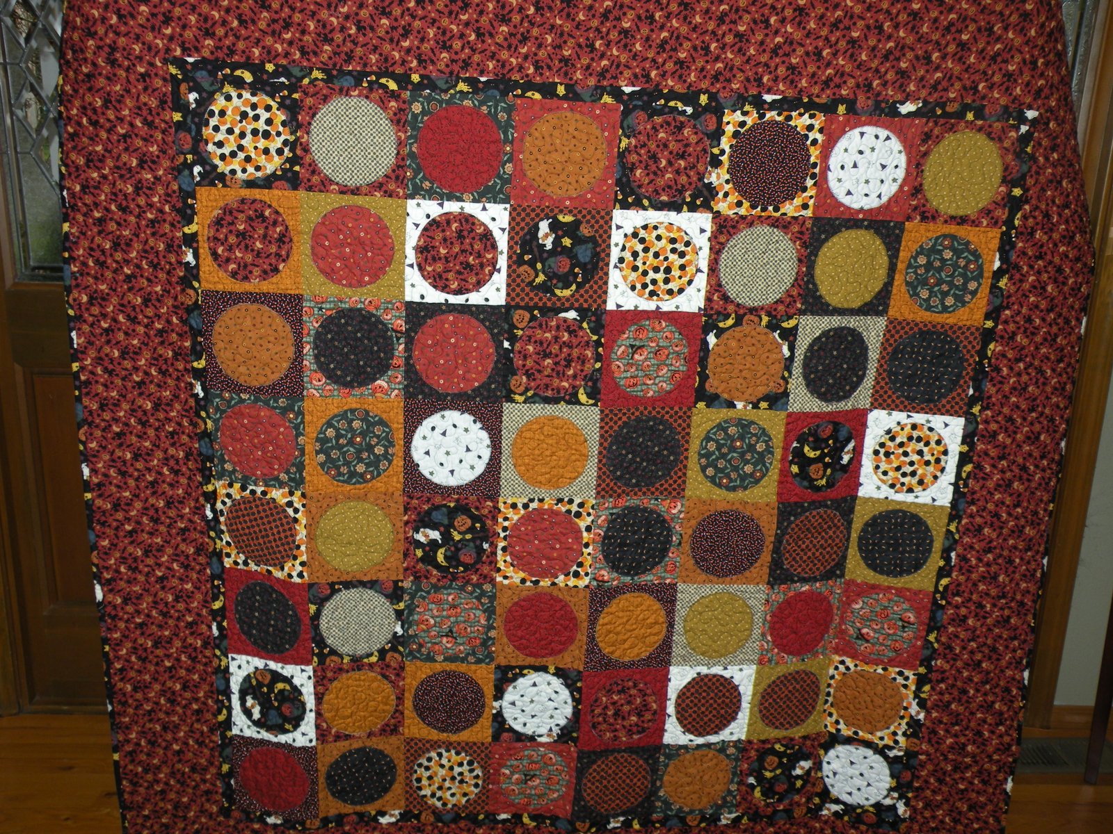 Stephanie brought in her Halloween circle quilt, now finished. It's such a wonderful quilt - there's something about a circle quilt, no? She also brought in this scrappy pink quilt, made from teeny-tiny scraps that were left over from something...she is the Queen of Scraps! I do love the pink - and what a great Valentine quilt it could be!