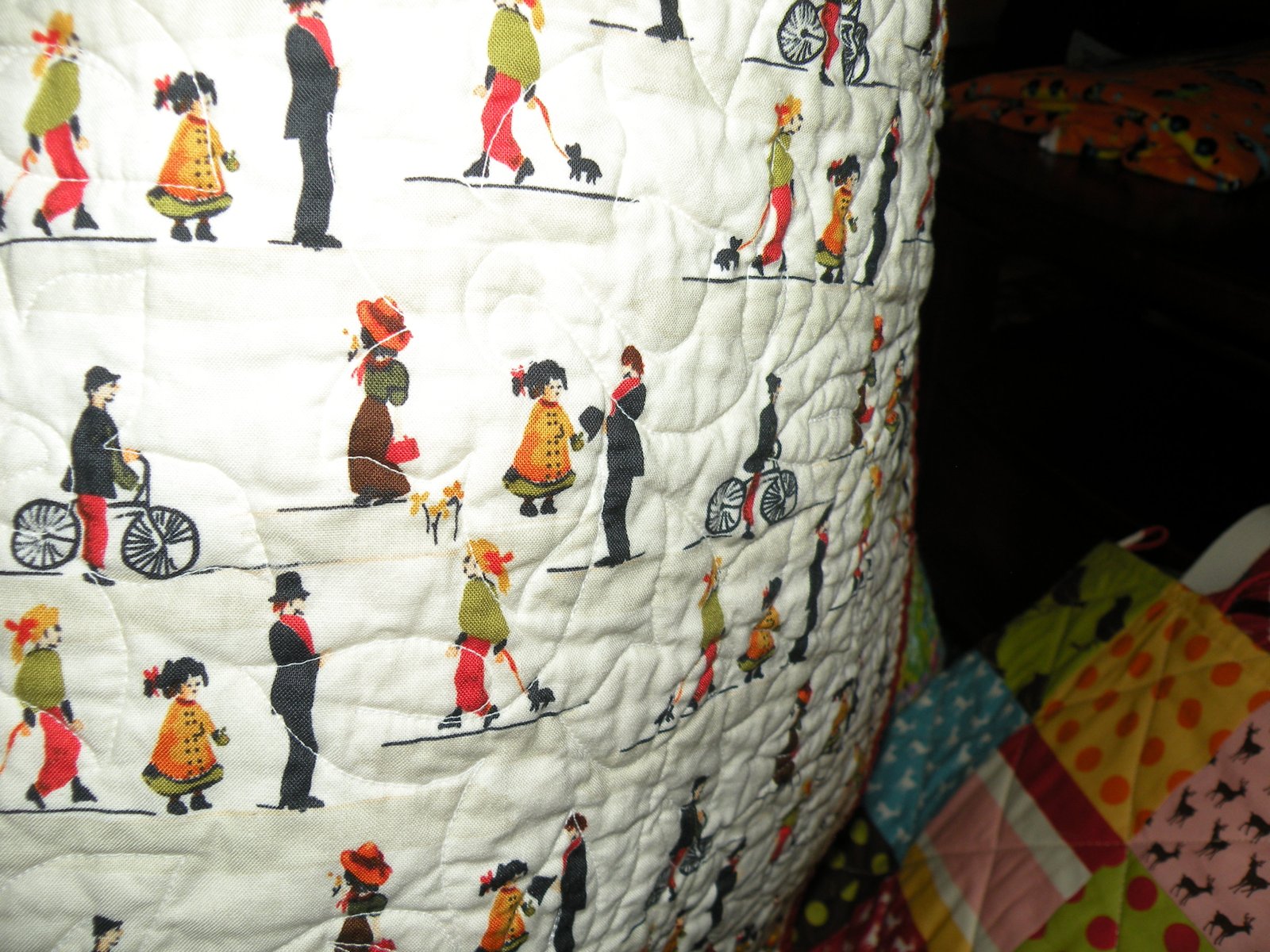 Another Helen quilt...scrappy and fun and the pic on the right shows her backing for this beautiful quilt - now how cute is that?!?