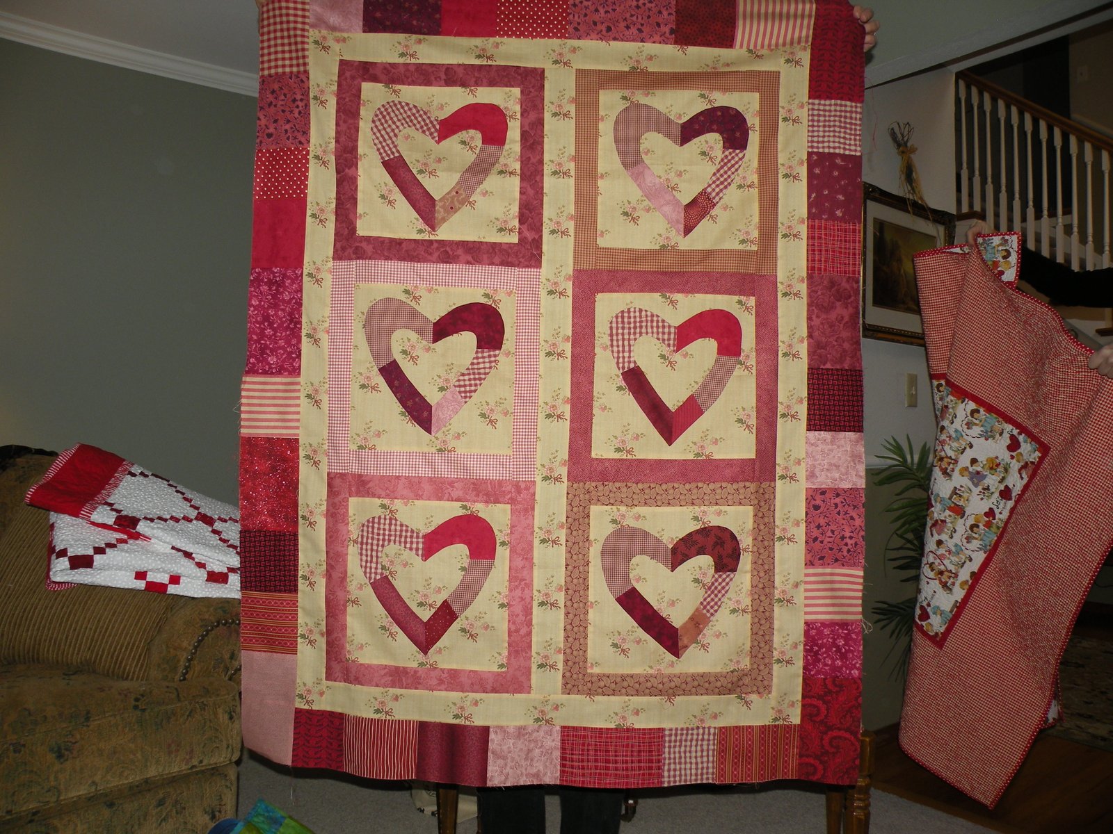 Barbara made this sweet Valentine quilt, which can also go under the group project...so there's at least three of them that met the goal! I love this quilt, love the hearts and the choice of colors - it's warm and wonderful! Way to go Barbara! (Oh, in the background you can see the back of Terry's Valentine quilt!)