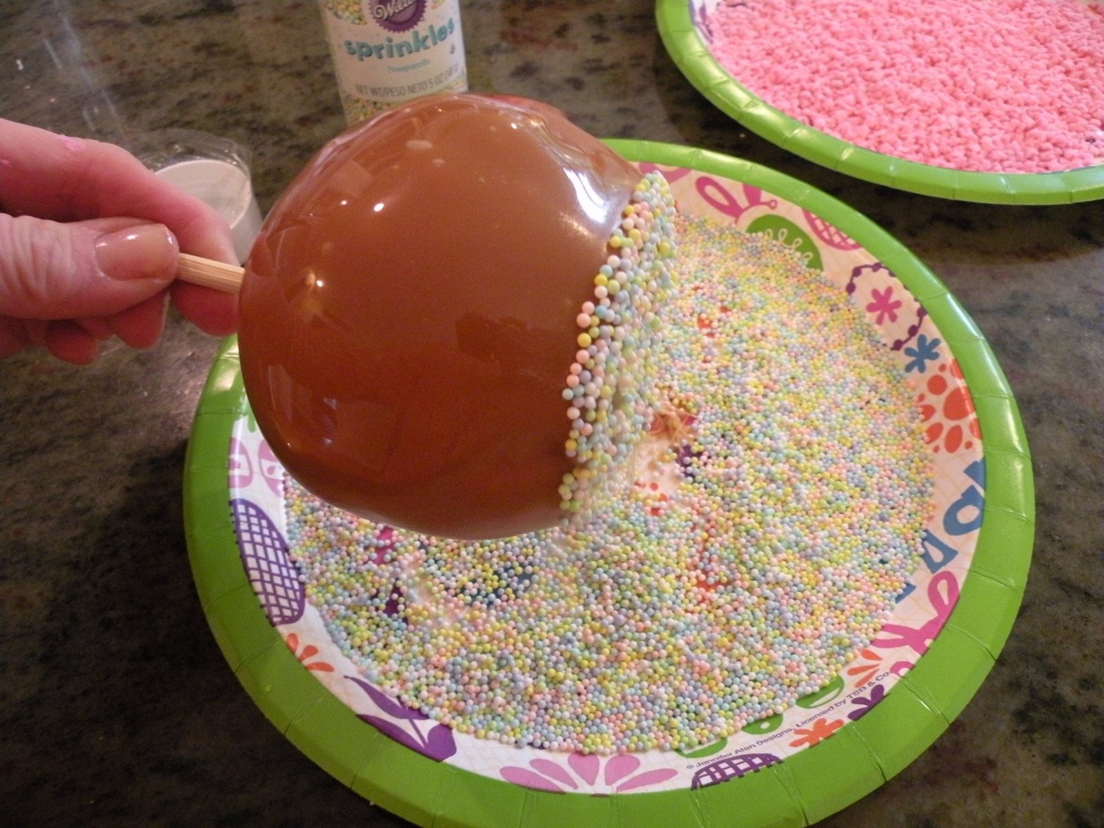 Making Easter Caramel Apples is a great way to guarantee the Easter Bunny will come to your house...as you know, he only goes where the welcome mat has been placed...so I have made sure to put a few things out so he will spot our house as one that needs another treat! And it's quite possible the Easter Bunny will leave with one of these caramel apples...as they make great gifts.