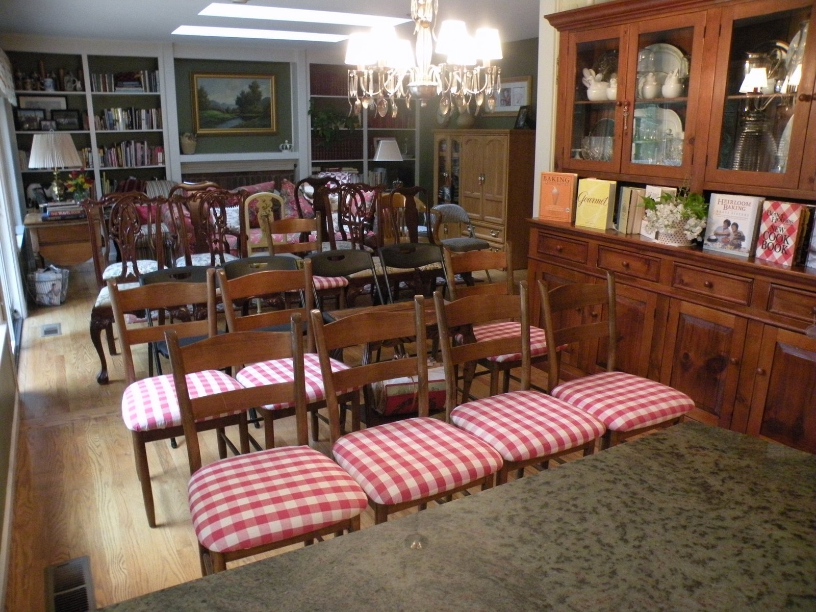 My Kitchen Tips Class was a success - I think everyone learned at least one thing and they seemed to enjoy it so maybe we'll have another in the near future! I did my best to make room for everyone - furniture was moved out onto the deck to make room for chairs - but even so they were packed in like sardines! I made my very favorite Coconut Cake with Lemon Curd Filling for the ladies to sample, and Megan brought 3 different pies for them to try, too! So at least they were well fed!