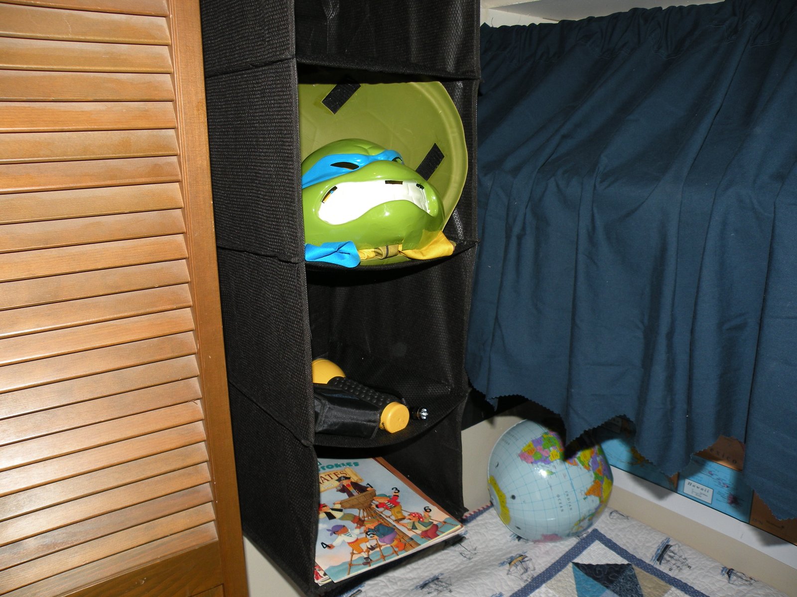 On top of the closet shelf is Max's new Ninja Turtle backpack that the Aussie picked up for him - she finds the greatest deals! Thanks Kareena! I also picked up the somewhat scary looking Moon pillow for Max...oh, and those are a pair of his shorts on the bed...so I won't forget to give them to him. Well, that's just a sampling of what I've been up to getting ready for the grands...now I'm just watching the clock until they arrive! I think Max will be in closet Heaven - can't hardly wait for him to see it!