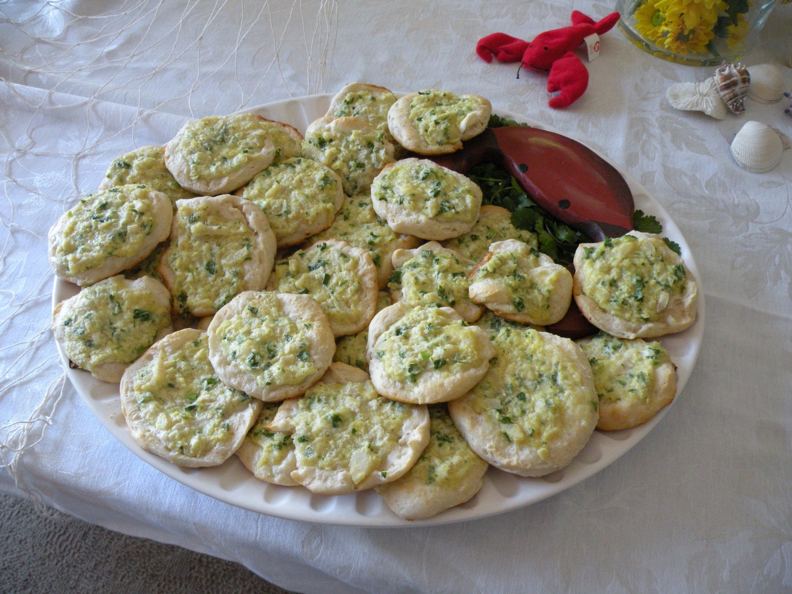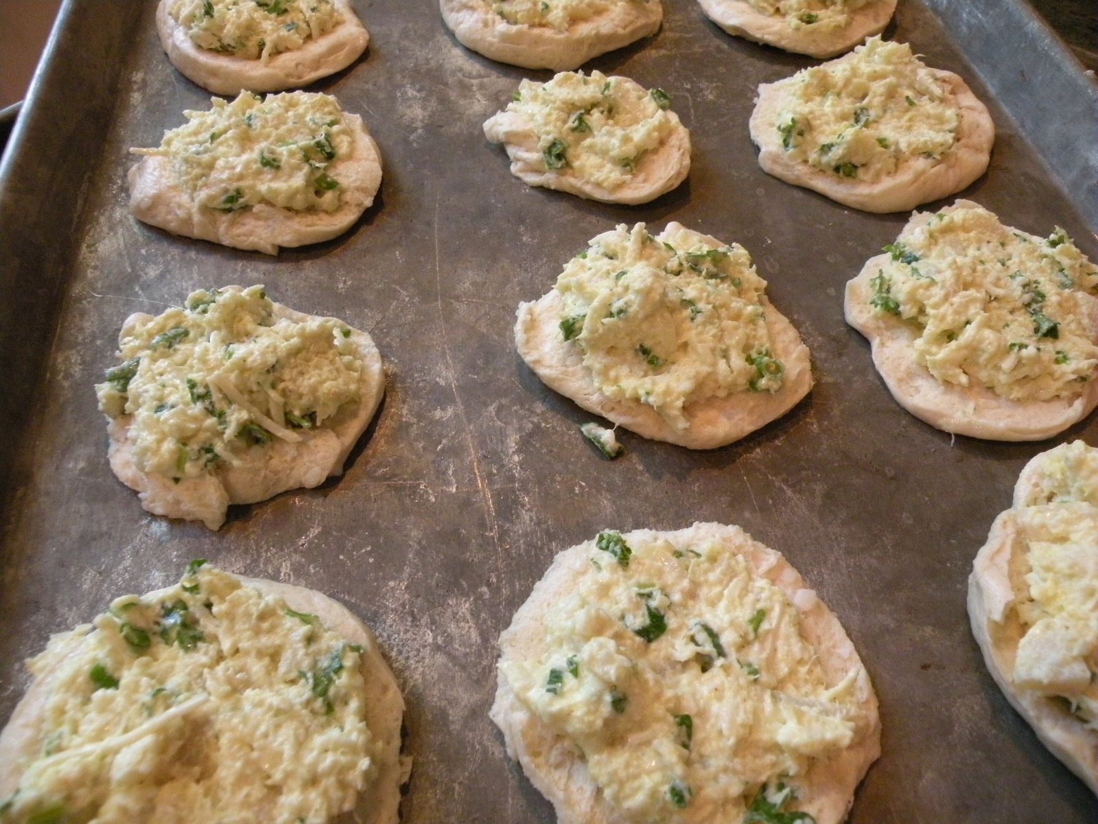 The pic above is from a shower this past summer that I made Crab Rounds for...they were a hit! My mom used to make these whenever she had a party so this appetizer has been around for a long time, there's probably a version of it in every church or Junior League cookbook in the country! I'm going to give it 5 dangs on the ol' Meter, my friends...this one is dang, dang, dang, dang, dang good!