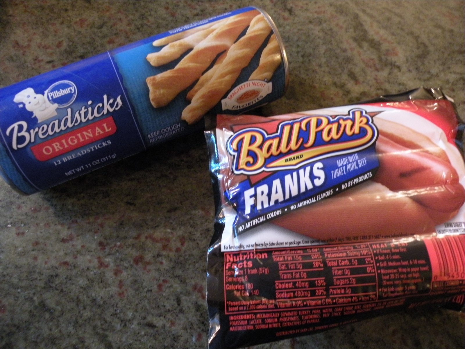 So easy you really don't need a recipe...just a can of refrigerated bread sticks (I used Pillsbury) and a package of hot dogs. And some pus. Mustard makes excellent pus. By calling mustard pus, it somehow seems to look like it and then it becomes very difficult to dip your dog...but be brave and go for it!