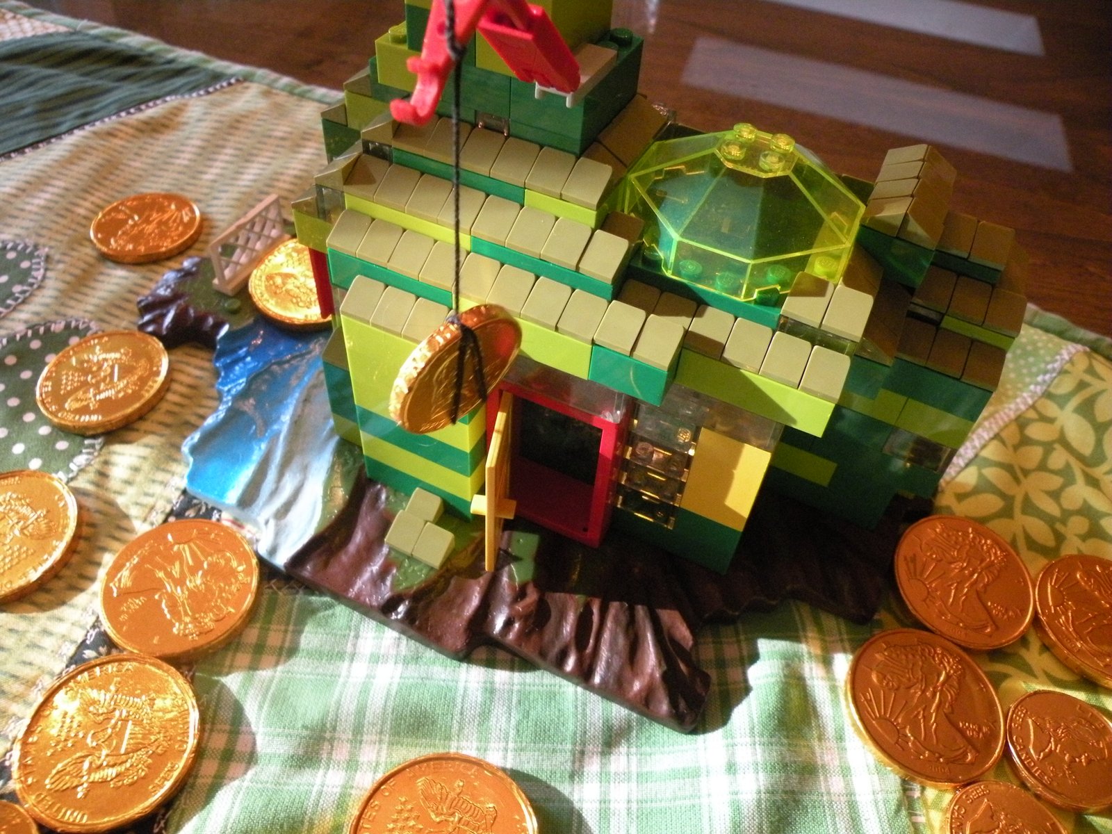 Using clear glass cups, glasses, or bowls will allow the pretty layers to be seen. Really, kids, this one is too good not to make - it's got everything going for it - it's festive, it's colorful, it's rich and decadent tasting - and perhaps one could even say it has Leprechaun attracting abilities...because how could a Leprechaun resist?!? By the way, it's not too late to get going on your Leprechaun trap! Surely my beautiful Lego Leprechaun trap, with a sun-roof and a retractable hook above the front door, will do the trick and catch me a Leprechaun this year!