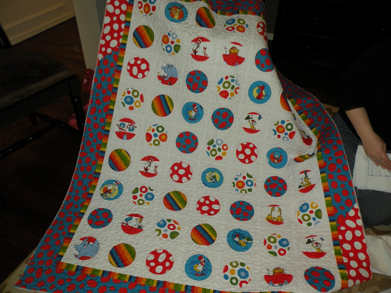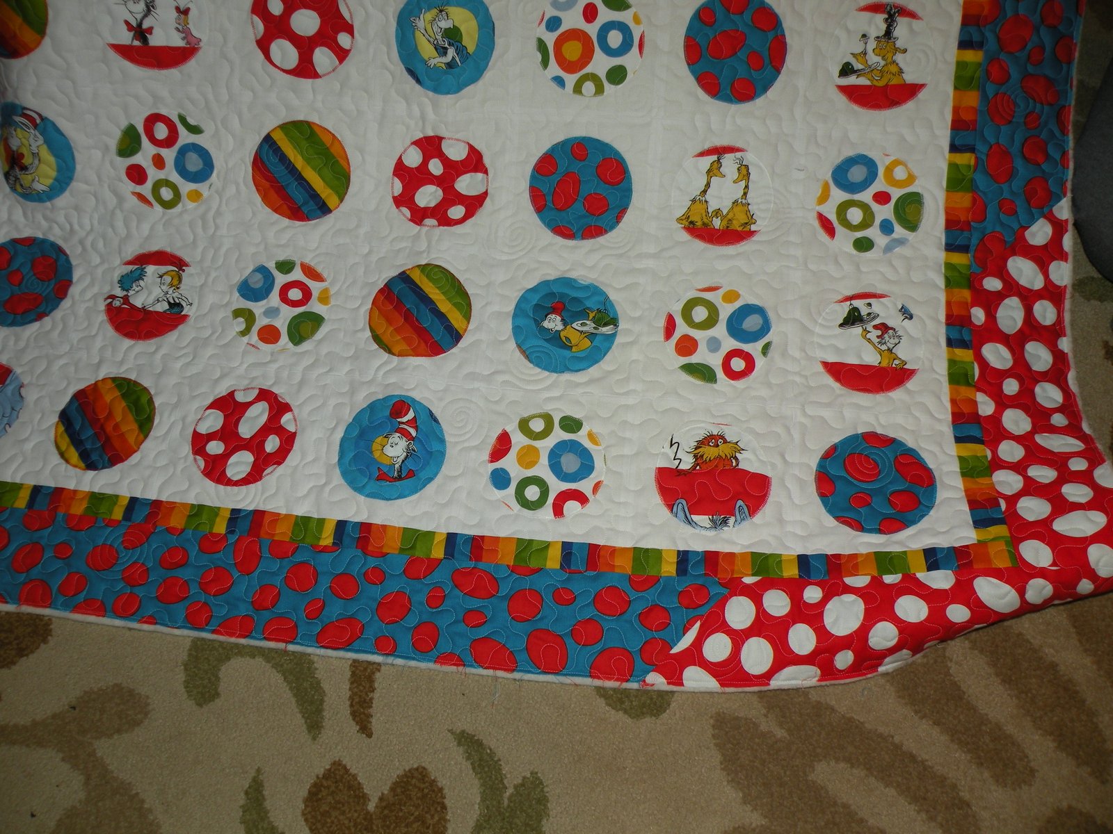 Terry brought in her Dr. Seuss circle quilt - it's bright, happy and fun! Take note of how she did her borders - piecing a different fabric around the corners - it gives this quilt such a great finish!