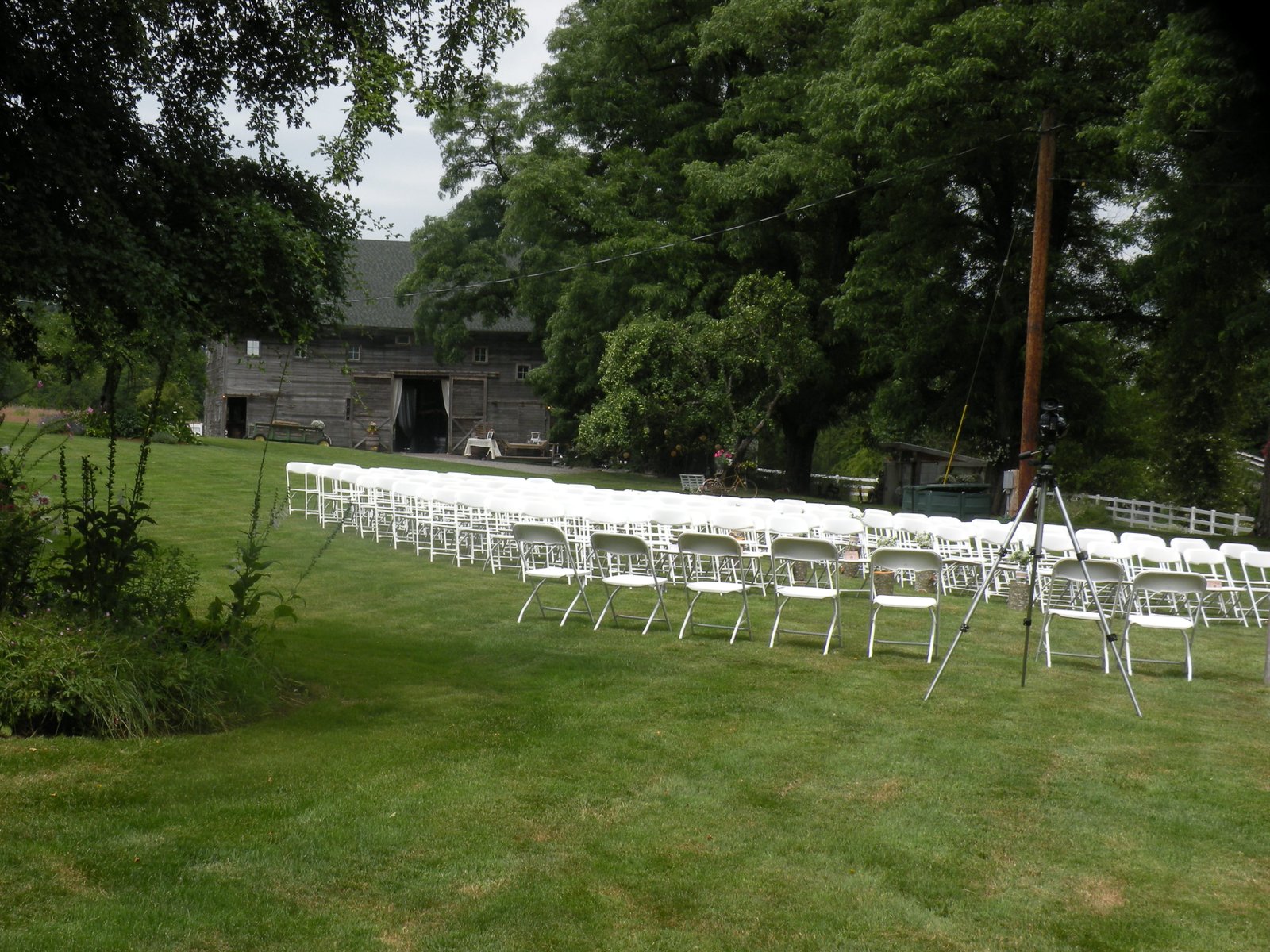 The reception was held in a barn - adorable in every way except for the temp...the cake was melting!!! Oh sure, there were fans inside the barn, but they were blowing HOT air...I'm sure the cake was only upright for an hour or two...maybe three...but this picture was taken at 2:00 and the cake cutting was not until much, much later...maybe it was more of a cake scooping? Now that would be picture worthy! So I'm waiting to hear...no news is good news, right?
