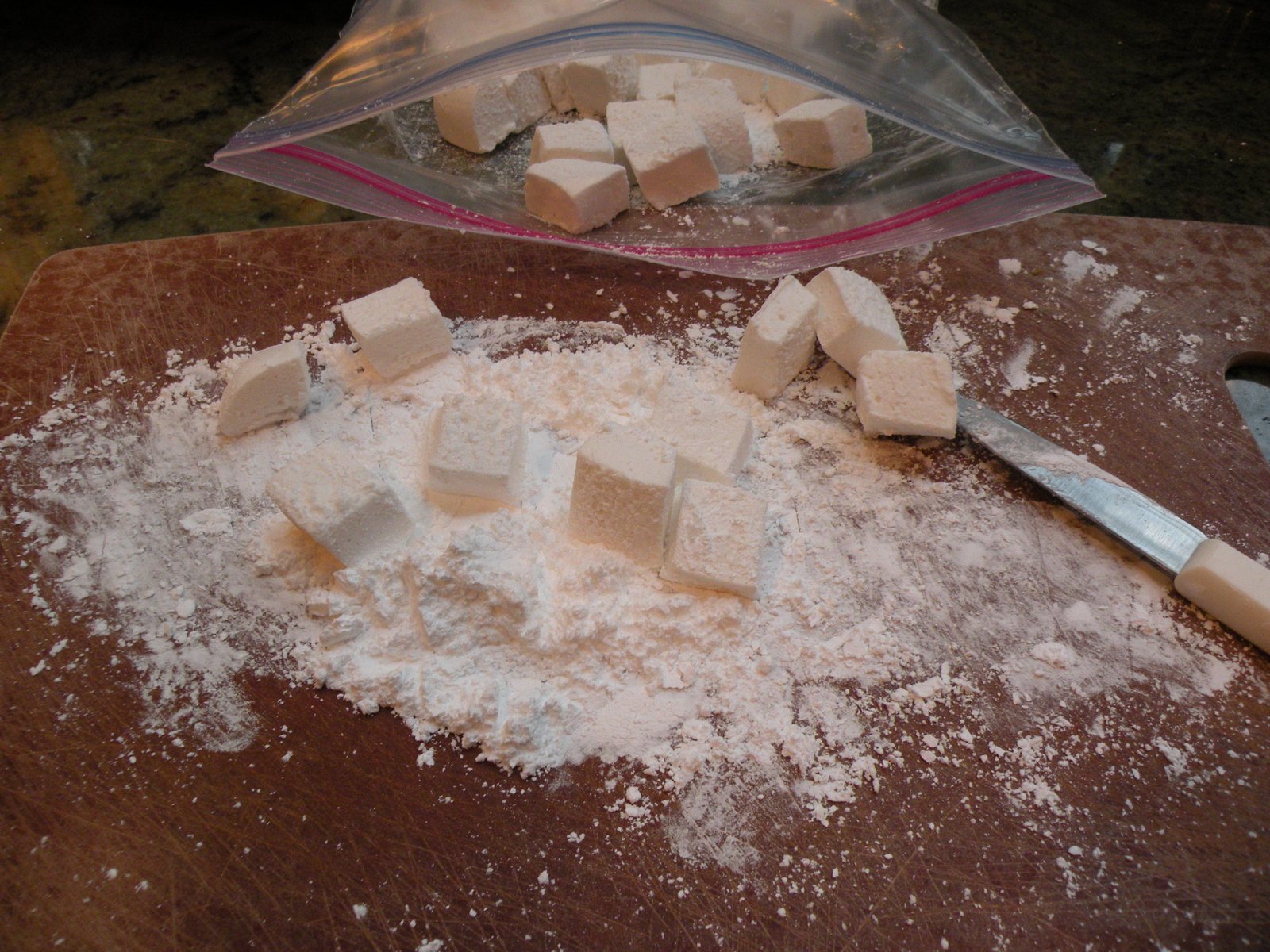 powdered sugar to sprinkle on top and to make cutting marshmallows easier