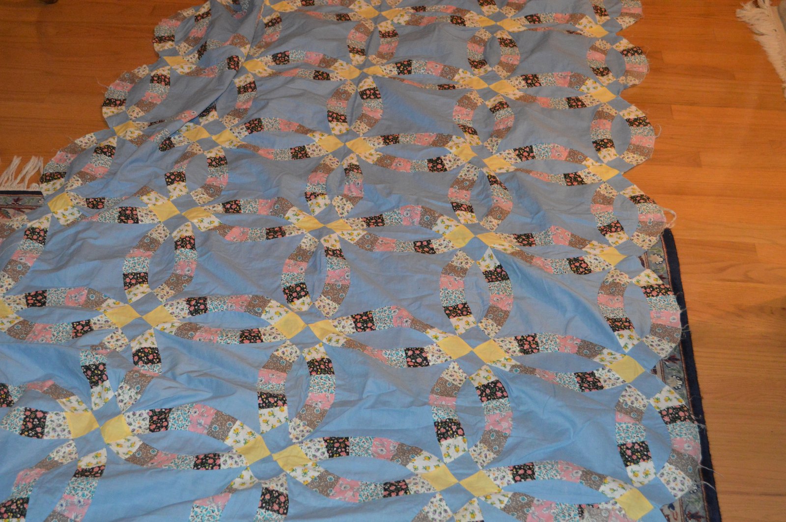 This is the last from Marsha's bag of tricks - her friend Karen let her bring in this old hand-pieced double wedding ring quilt. It's pretty wavy and stretched out in places but it will be beautiful once it's quilted! I do hope it gets quilted...or maybe, just maybe, Karen will see the light and give this to me, too!