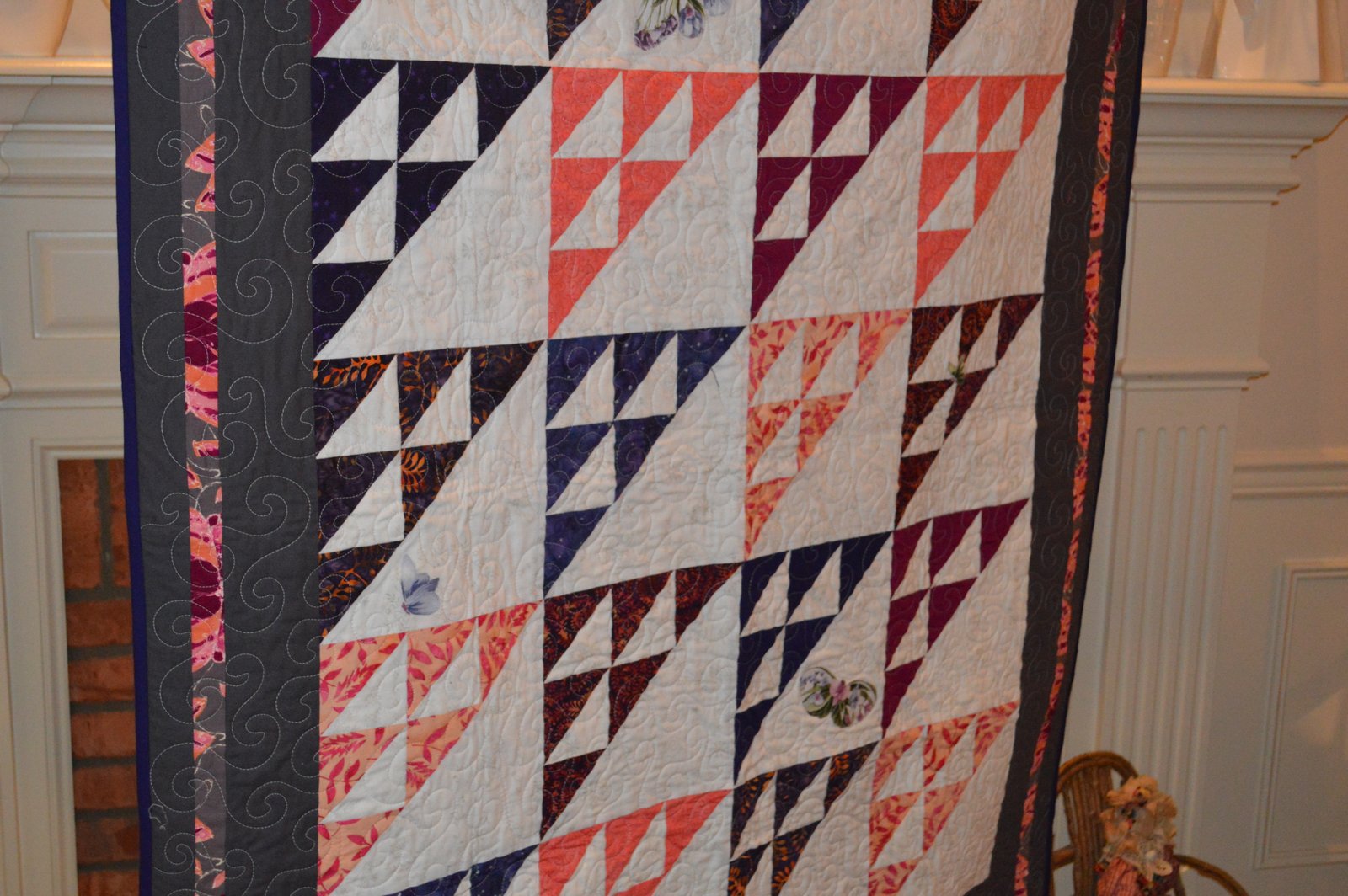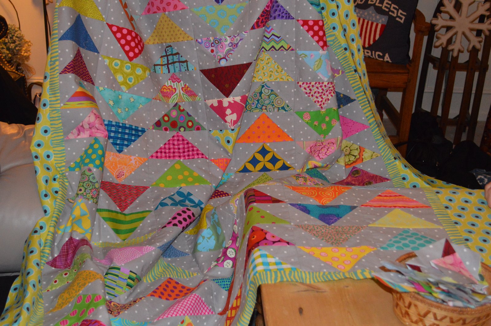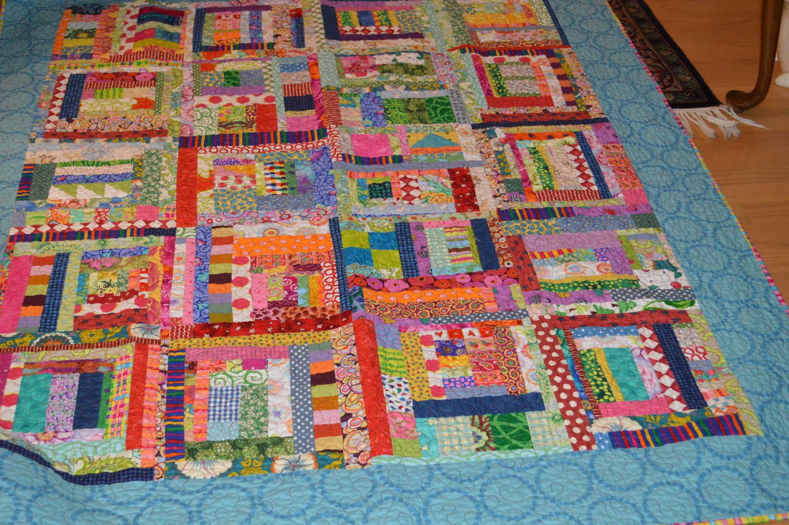 Helen's daughter Michelle made this quilt for Helen for Christmas - what an awesome gift! I think you can see the apple didn't fall far from the fabric stash - Michelle's quilt is very much like a "Helen Quilt" - and this is one of Helen's favorite kind of quilt - bright, happy and scrappy! (Note to the girl: This IS an excellent gift!)