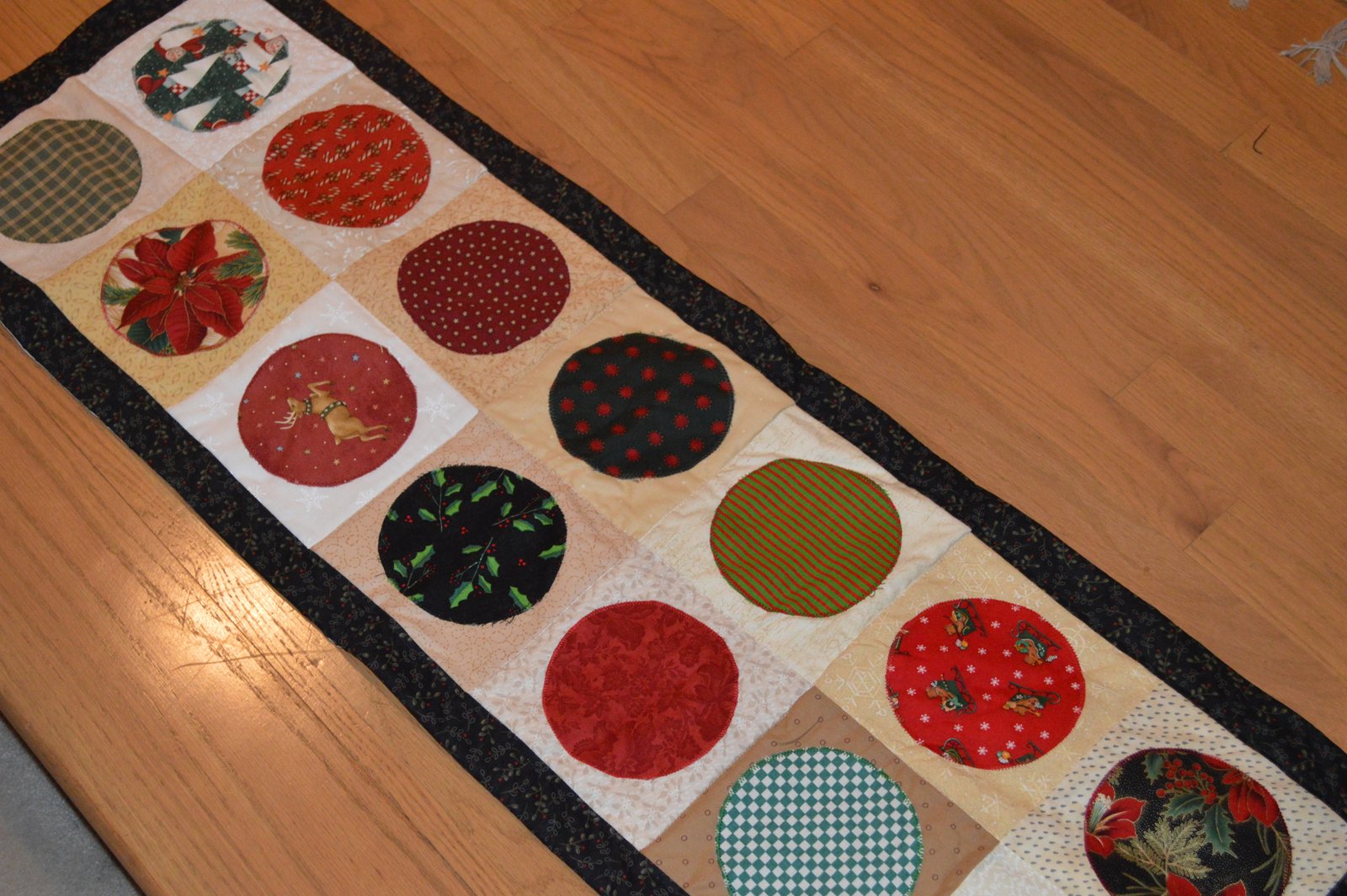 Helen gave Denise some orphan Christmas circle blocks and Denise turned them into a runner. It's always nice when someone's trash becomes a treasure!! Not that these were trash - oh, you know what I mean!