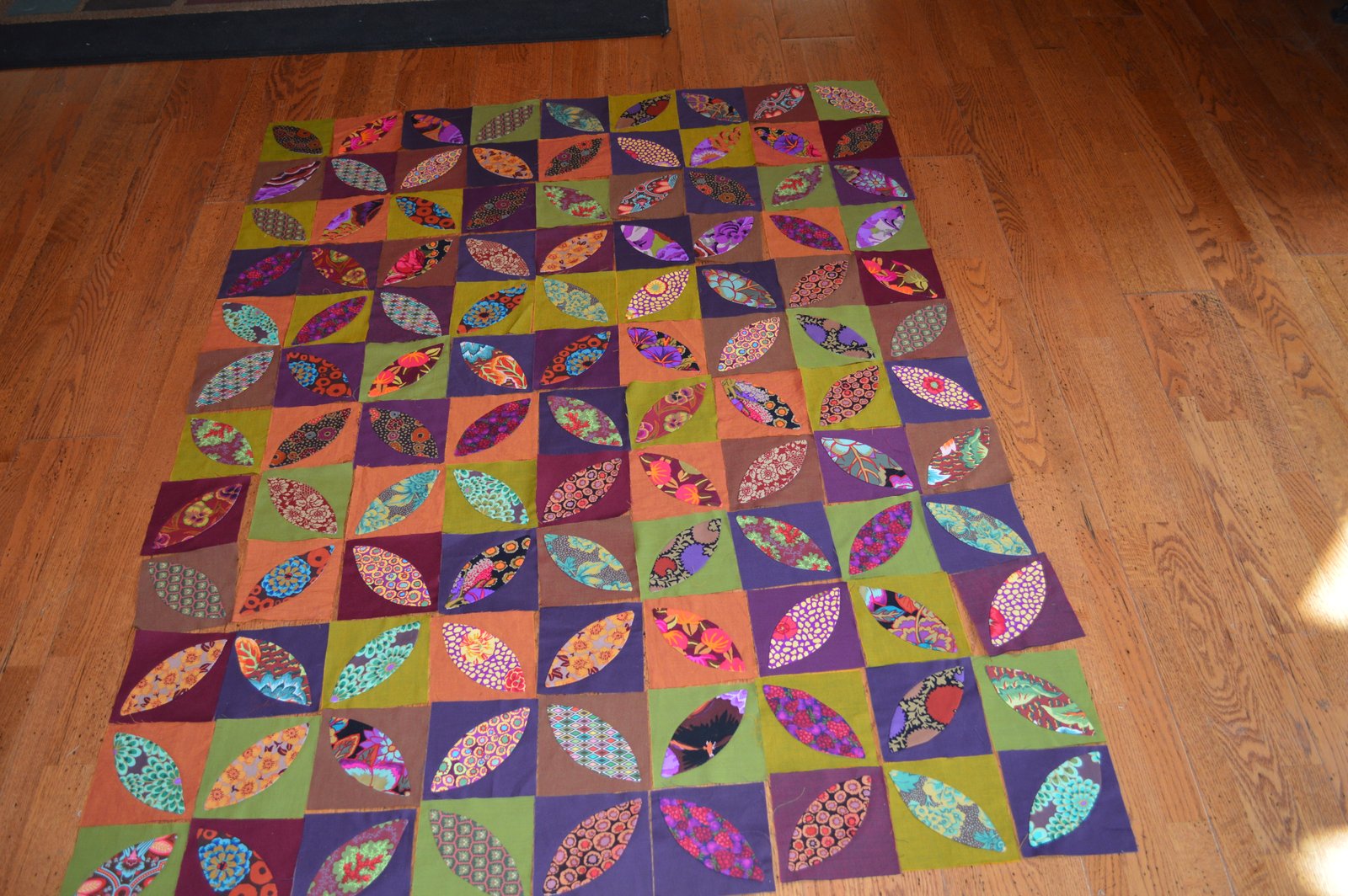 We didn't do a great job of laying out the fabrics but I think you get the idea - the back will be as wonderful as the front - way to go Marsha!