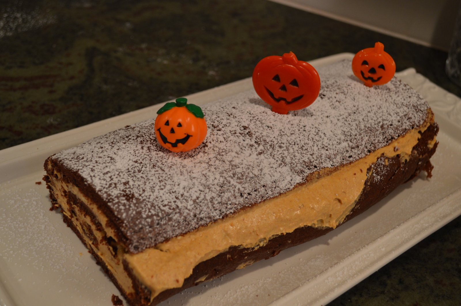 Since I've hosted my quilting friends many times right before Halloween, I try to do some fun and interesting things for them...and I always try to have yummy food. Alas, I didn't have much up my sleeve this year! And when it came to the food, I thought I'd do something creative so I decided to give something new a try...and it didn't work! I read a recipe for pumpkin soup and it sounded interesting...I made it and it was disgusting. I threw the entire thing out! The recipe called for pumpkin, cinnamon, maple syrup, Worcestershire sauce and Soy Sauce!!! Disgusting I tell you!! I also made a chocolate pumpkin roll that looked good but was equally as disgusting...only this time I didn't throw it out but served it to my quilting friends! Talk about horror! I didn't taste the filling when I made it, so I was as surprised as everyone when I had one bite and realized it was a stinker!! I told them they didn't have to eat it and they didn't! I'm not sure what went wrong but I won't be making it again! It was...what's the word...oh yeah, just too vomitous!